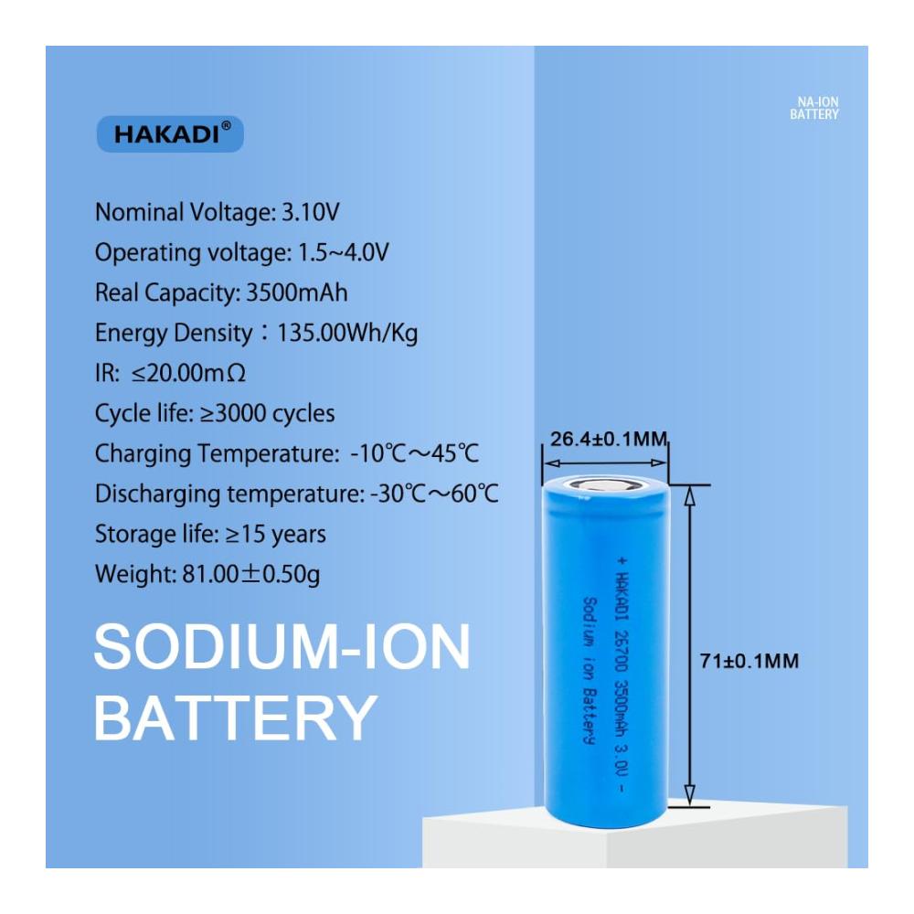 Holen Sie sich mit den 10PCS Wiederaufladbare Natrium-Ionen Batterien 3V 3500mAh/10.5WH die Power, die Sie für Ihre Elektro-Roller benötigen. Diese hochwertigen Akkus von HAKADI bieten eine Nennspannung von 3,1V und eine Standardkapazität von 3500mAh. Mit einem integrierten Sicherheitskreis sind sie sicher vor Überladung, Tiefentladung, Kurzschluss und Überhitzung geschützt. Perfekt für Elektrowerkzeuge und mehr!