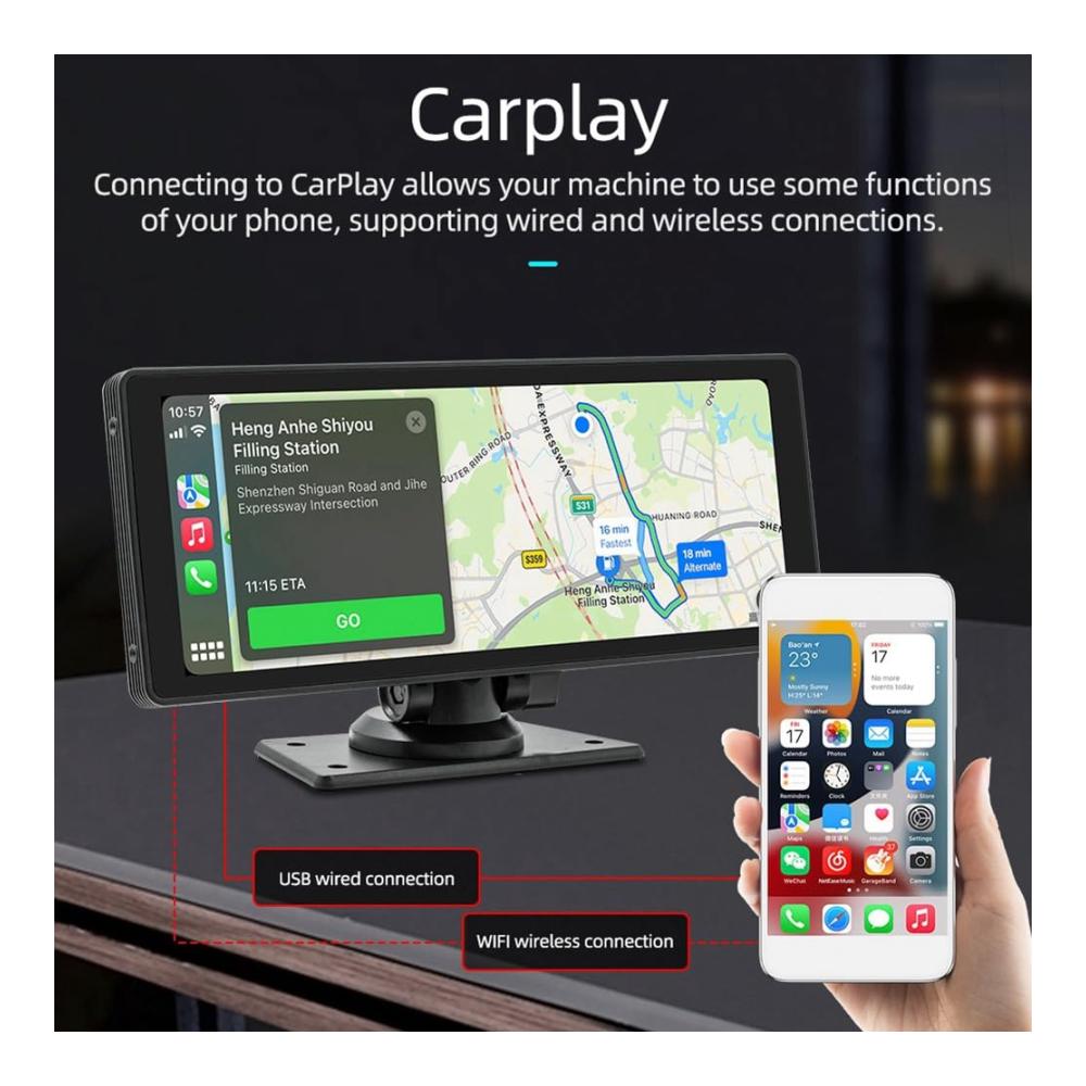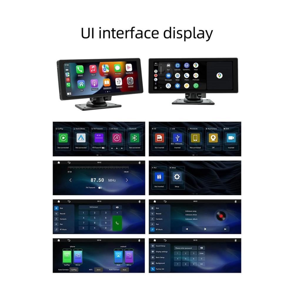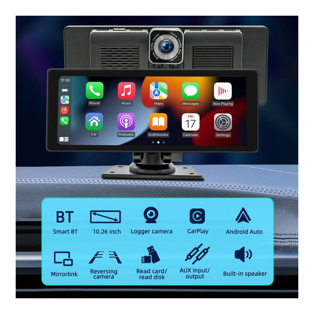 Das Auto-Touchscreen 10 26 Zoll tragbar Auto-Host mit Zentralsteuerung Fahrrekorder bietet ein 10,3 Zoll Display mit Touch-Funktion und eine Vielzahl von Funktionen für ultimatives Fahrvergnügen. Mit Bluetooth 5.0 und WLAN-Konnektivität sowie Unterstützung für Mirrorlink, CarPlay und Android Auto. Die Autokameras und der eingebaute Fahrrekorder gewährleisten maximale Sicherheit auf der Straße. Mit einem robusten ABS-Metallgehäuse und einem umfangreichen Zubehörpaket ist dieses Produkt perfekt für alle Autofahrer geeignet.