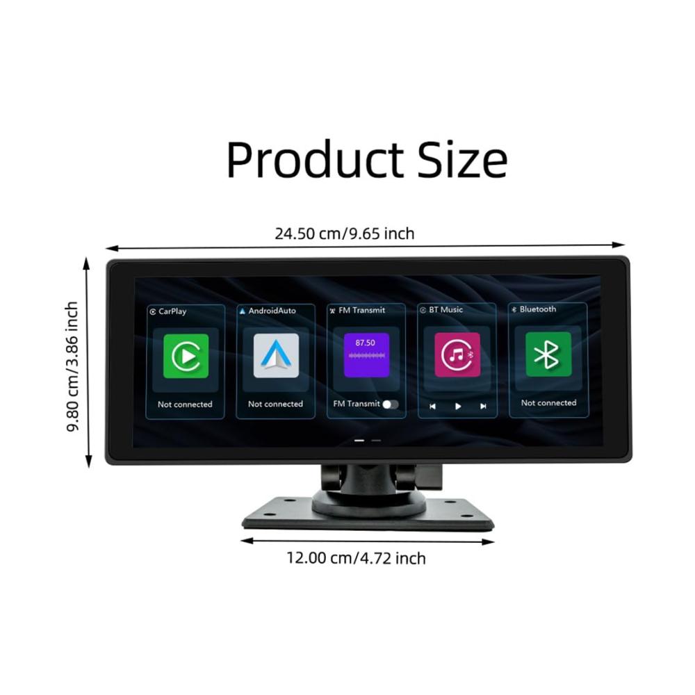 Ycagrain Display:10,3 Zoll Display 【Touch-Funktion】Das Display verfügt über Touch-Funktion. Radioübertragungsfrequenz: FM 87.5~108.0MHz Spannung: 12 ~ 30 V. Leistung: eingebauter 1-W-Lautsprecher Lautsprecher: eingebauter Lautsprecher (1W) Abmessungen: 65 x 65 mm, 120 x 68 mm. Arbeitstemperatur: -10 ~ 60 ℃. Bluetooth-Version: Version 5.0 WLAN-Frequenz:2.4G/5G Dual Frequenz Mobiles Internet: Mirrorlink, CarPlay (kabelgebunden kabellos) Android Auto (kabelgebunden kabellos) Bildschirmauflösung:1600×600 Mirror-Link-Verbindung: unterstützt Rückfahrbild: unterstützt. Eingebauter Fahrrekorder: unterstützt (Recorder Speicher 64G) USB-Schnittstelle: USB2.0-Lesung Audio-Ausgang: unterstützt (3,5 mm). AUX-Audio-Eingang: unterstützt (3,5 mm). Rückfahrvideo-Eingang: unterstützt (2,5 mm). Werkseitig eingestelltes Passwort 113266 Material: ABS Metall. Farbe: schwarz Package Contents: 1 x Host mit Fahrrekorder 1 x Englische Bedienungsanleitung 1 Kabel mit 2 USB-Anschlüssen. 1 x Aufsatzständer. 1 x Saugnapf-Tischständer. 1 x Rückfahrvideokabel 1 x AUX-Audio-Adapterkabel Nur der oben genannte Paketinhalt, andere Produkte sind nicht enthalten. Hinweis: Lichtreflexion und verschiedene Displays können dazu führen, dass die Farbe auf dem Bild ein wenig vom tatsächlichen Produkt abweicht. Messabweichungen von /- 1-3 cm sind möglich.