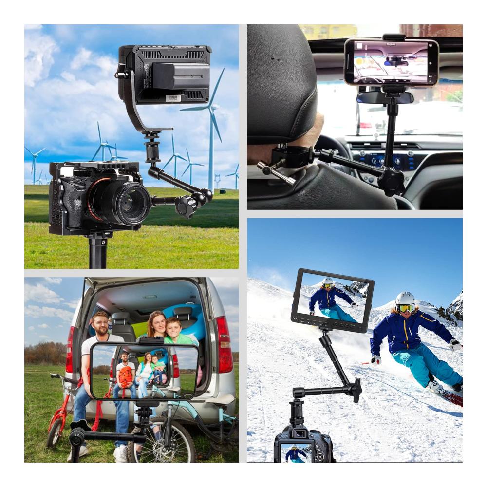 【Universal Equipment Tool】Der flexibel einsetzbarer Kamerahalter eignet sich besonders für LCD-Monitoren, Spiegelreflexkameras, LED-Lichtern usw., die in jedem Winkel aufgenommen werden und kann auch direkt an einer DSLR- oder Camcorder-Halterung montiert.
