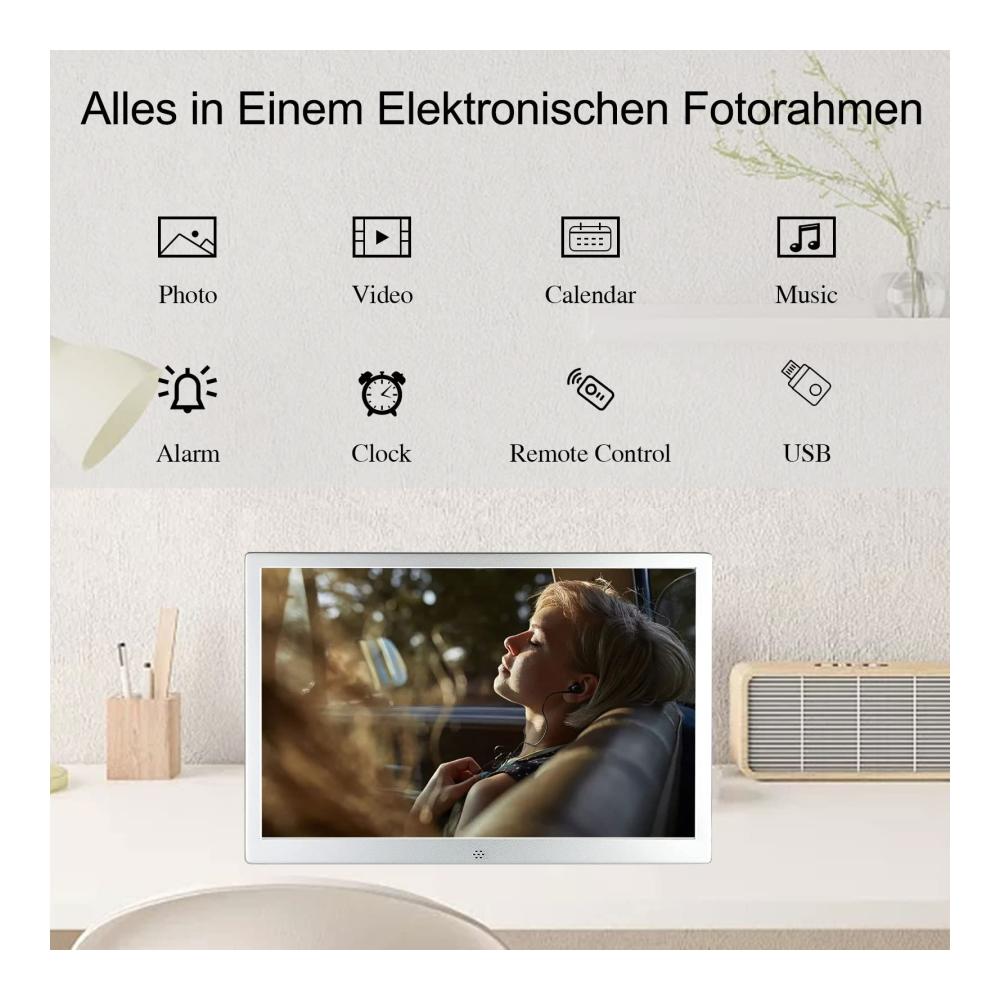 Entdecken Sie die unvergleichliche Vielseitigkeit unseres 15 Zoll Digitalen Bilderrahmens. Mit einer beeindruckenden Auflösung von 1080p und einer kompatiblen Verbindung zu Laptop und Smartphone bietet er Ihnen die perfekte Plattform, um Ihre Erinnerungen zum Leben zu erwecken. Dank der Fernsteuerungsmethode und des metallenen Rahmens ist die Bedienung und Handhabung ein Kinderspiel. Erleben Sie Ihre Lieblingsfotos und -videos in HD-Qualität und genießen Sie die Flexibilität, die dieser digitale Bilderrahmen bietet.
