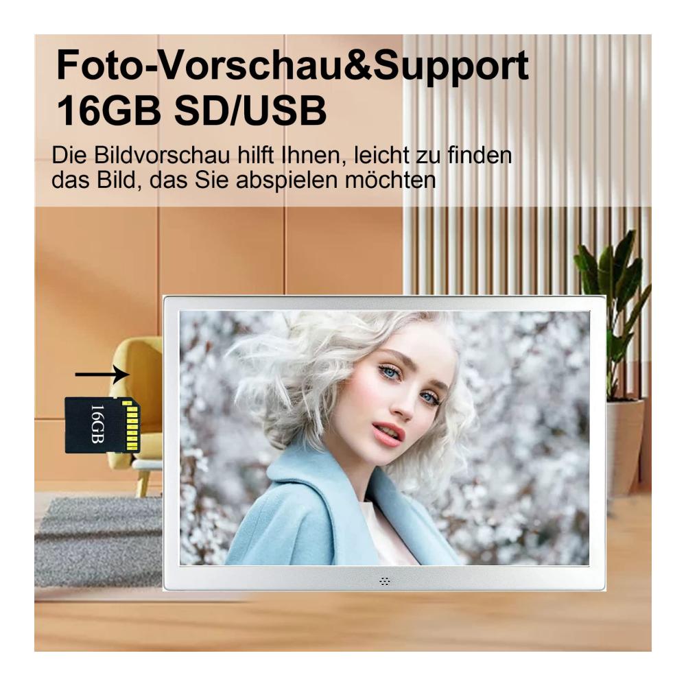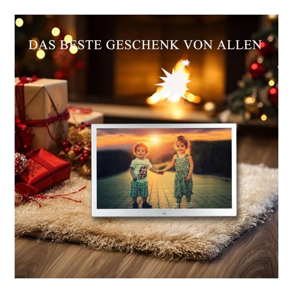 【Hervorragende Bildqualität】Die hohe Auflösung von 1280*800 sorgt dafür, dass der digitale Fotorahmen gestochen scharfe und klare Bilder liefert und Ihnen ein außergewöhnliches Seherlebnis aus allen Blickwinkeln bietet. Darüber hinaus kann die Helligkeit des Rahmens manuell an die Lichtverhältnisse angepasst werden, um Ermüdungserscheinungen zu vermeiden.