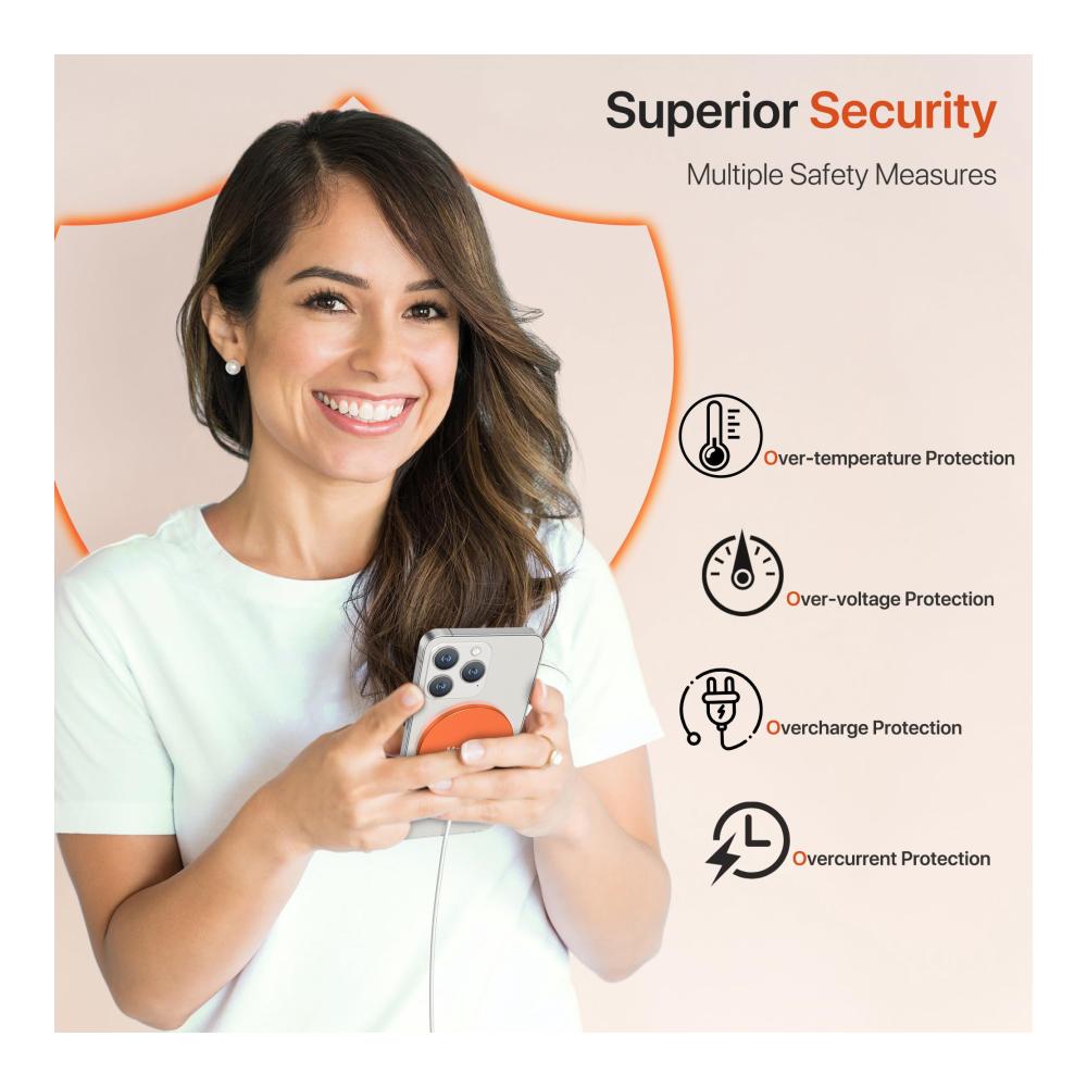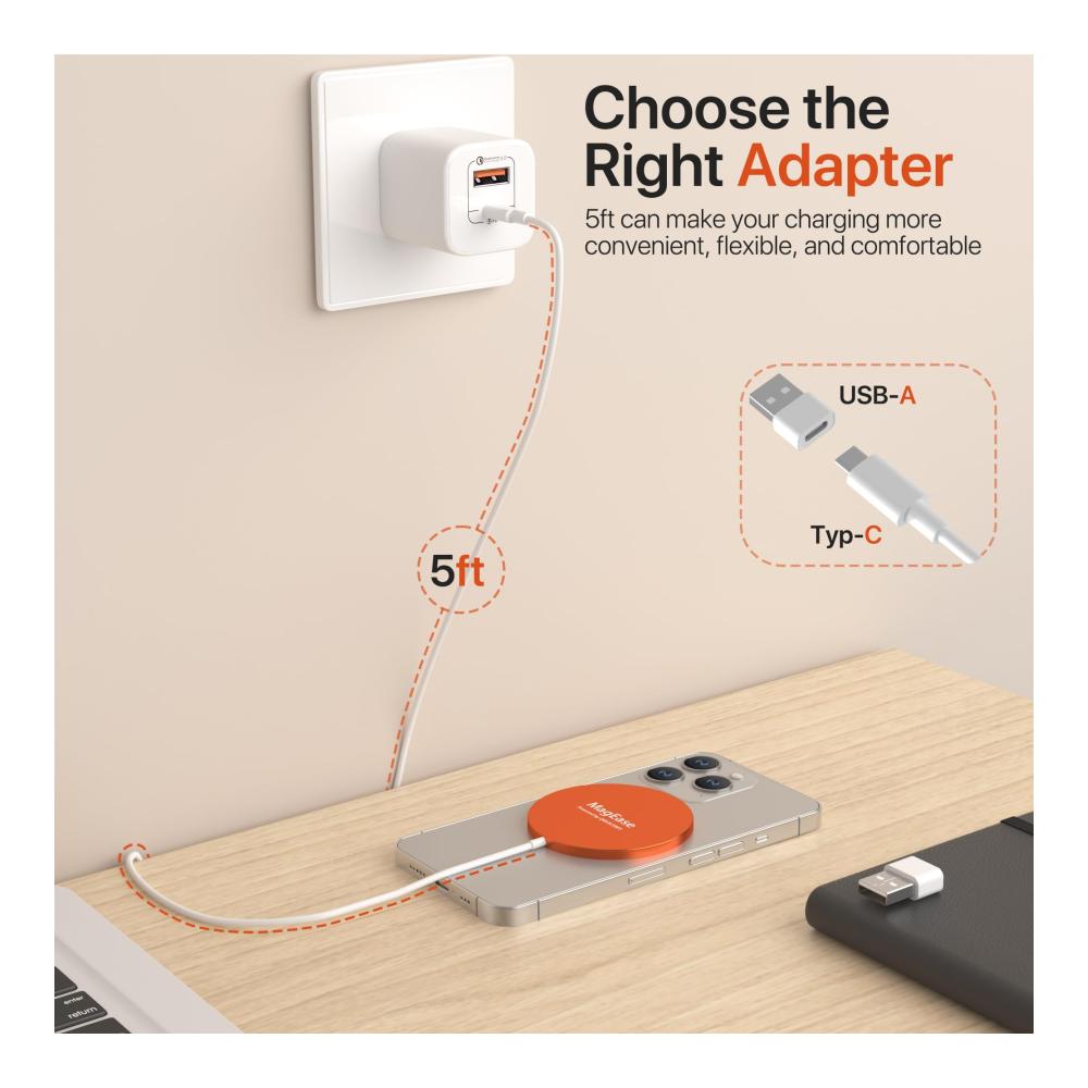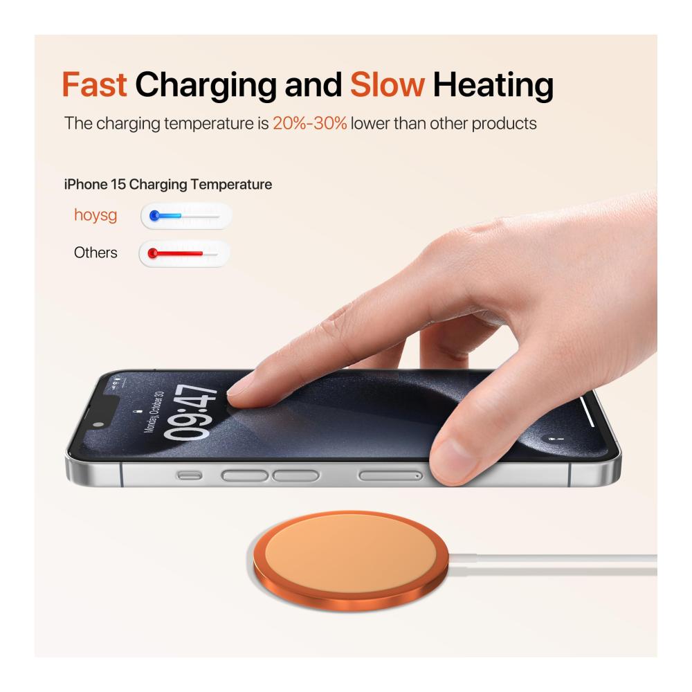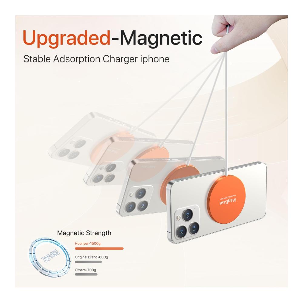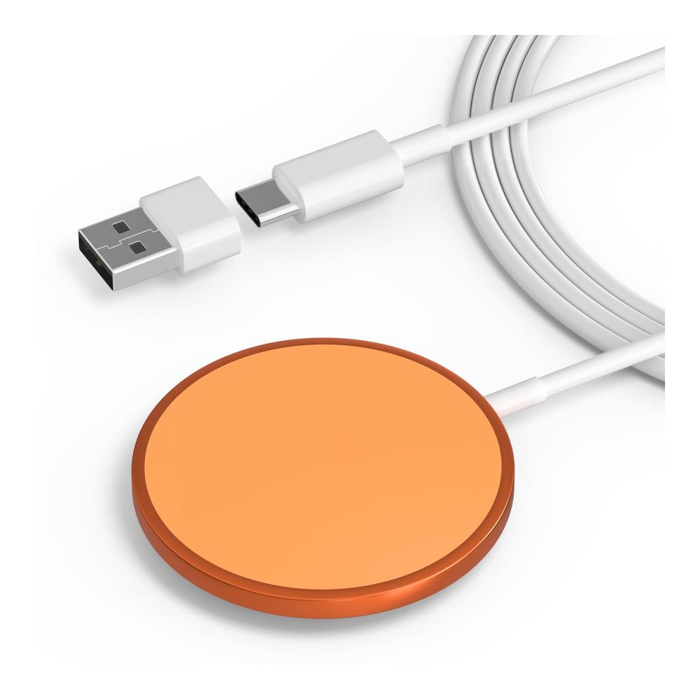 Magnetisches kabelloses Ladegerät MagEase 15 W: Mit hoher Kompatibilität für iPhone 15/14/13/12 und AirPods 3/2/Pro/Pro2 bietet dieses Ladegerät eine bequeme und effiziente Lademöglichkeit. Die Tangerine-Farbe und das elegante Design fügen Ihrem Raum Stil hinzu. Mit USB Typ C-Konnektivität und 15 Watt Leistung ist es die ideale Wahl für Ihr digitales Leben.