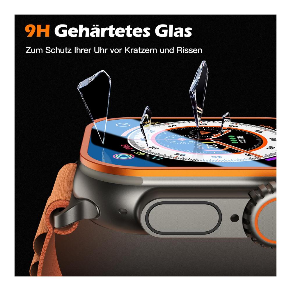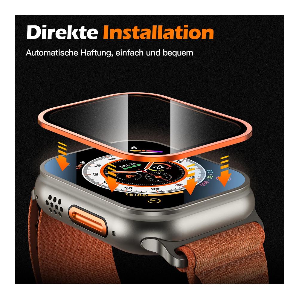 【Doppelschichtiger Schutz】Der displayschutz verwendet 9H gehärtetes glas und einen orange legierungsrahmen, um ihre Apple Watch Ultra 2 und ultra vor kollisionen, stürzen und kratzern im alltag zu schützen, was die kosten für den ersatz der iwatch erheblich reduziert.
