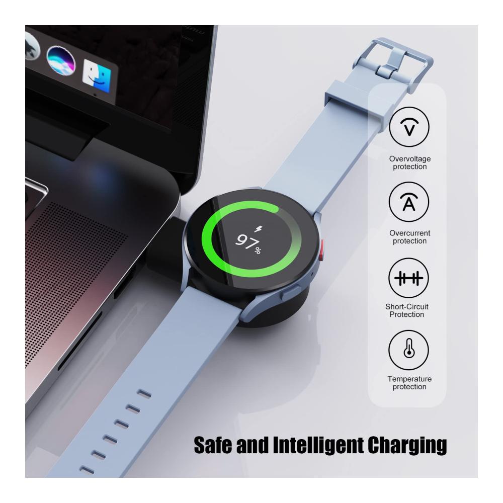 💪【 Power Protection Inside (PTC)】Das Ladegerät für Samsung Galaxy Watch 6 verfügt über einen integrierten High-End-Smart-Chip mit PTC-Stromschutzfunktion, der Überstrom-, Überspannungs-, Kurzschluss- und Übertemperaturschutz für die Uhr bietet und eine sichere Ladeumgebung für Ihre Galaxy Watch bietet.