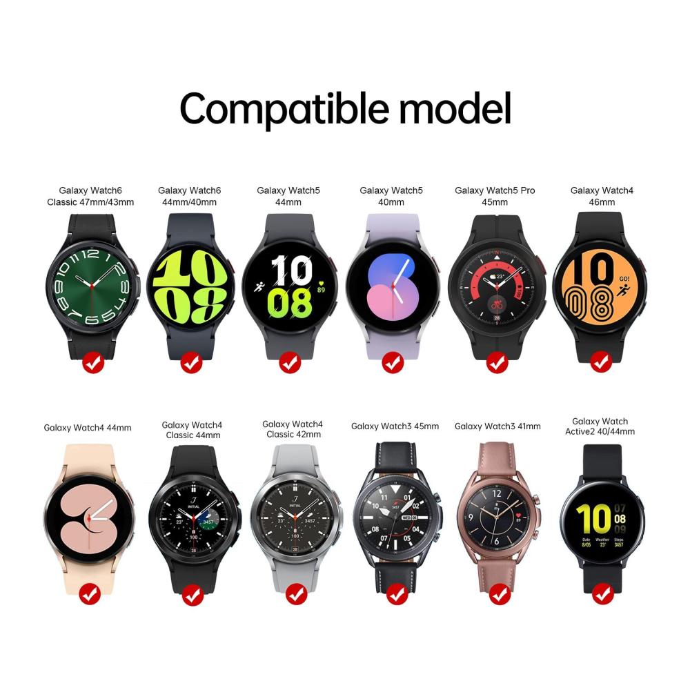 Kompatible Geräte: Galaxy Watch 6 Classic (47mm/43mm), 6 (44mm/40mm), Galaxy Watch 5,5 pro, Galaxy Watch 4 40 mm, Galaxy Watch 4 44 mm, Galaxy Watch 4 46 mm, Galaxy Watch 4 Classic 46 mm/42 mm, Galaxy Watch 3 41 mm/45 mm, Galaxy Watch Active 2 40 mm/44 mm, Galaxy Watch Active 1
