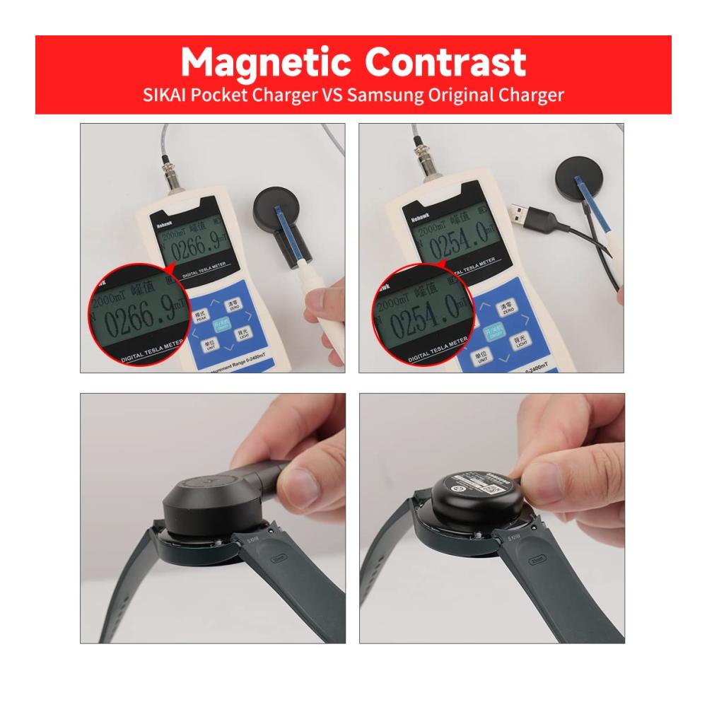 📣Hinweis:Das Ladegerät für Samsung Galaxy Watch 6 kann nur in einem Winkel von 30° gedreht werden,um ein Verrutschen schwerer Uhren zu verhindern.Nicht zu stark schleudern.Bitte schauen Sie sich das Video zum Test des Produktmagnetismus an: Einige Leute berichten,dass der Magnetismus des Produkts nicht stark ist,weil der Originalmagnetismus dieser Markenuhr nicht sehr stark ist und der Magnetismus unseres Produkts größer ist als der des Originals.Die Uhr ist magnetisch aufgeladen und im täglichen Gebrauch kein Problem.