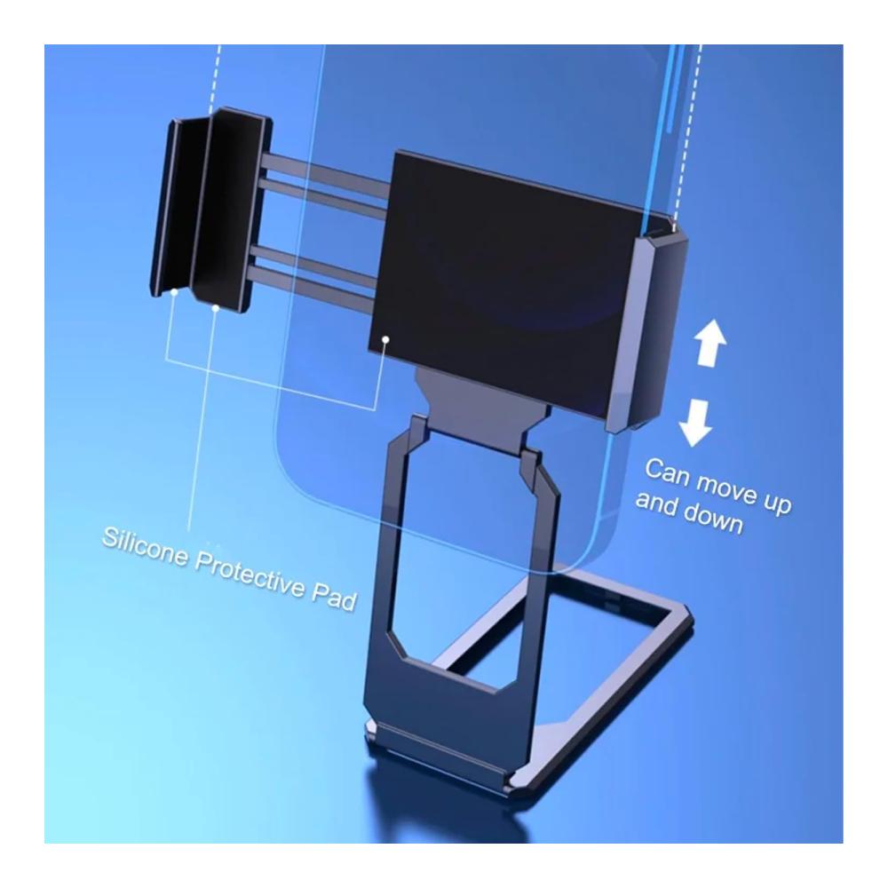 Höhe und Winkel einstellbar: Der universelle Telefonständer ist so konzipiert, dass er einen bequemen Betrachtungswinkel und eine angenehme Höhe bietet. Mit der einstellbaren Neigung und Verlängerung können Sie leicht die perfekte Position finden, die Ihren Rücken und Nacken entlastet. Verabschieden Sie sich vom ständigen Blick nach unten auf den Bildschirm Ihres Telefons und genießen Sie die Hände frei für Online-Kurse oder Live-Streams