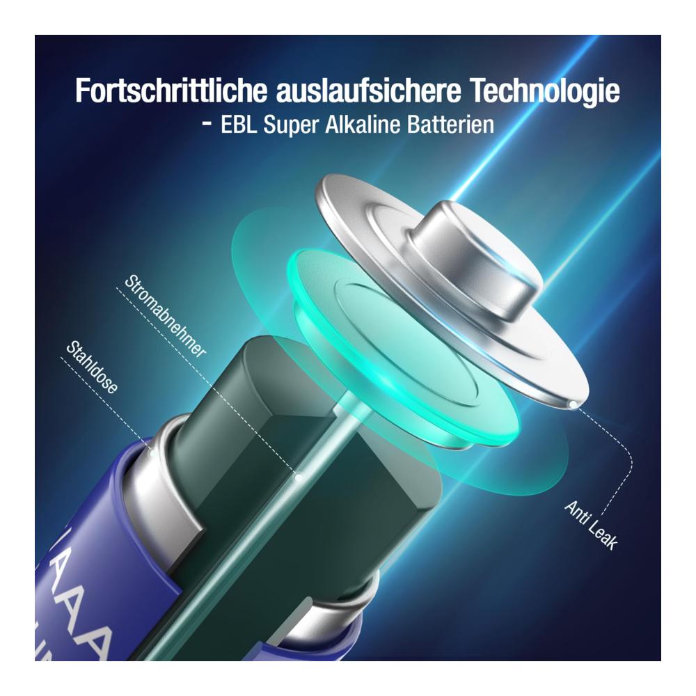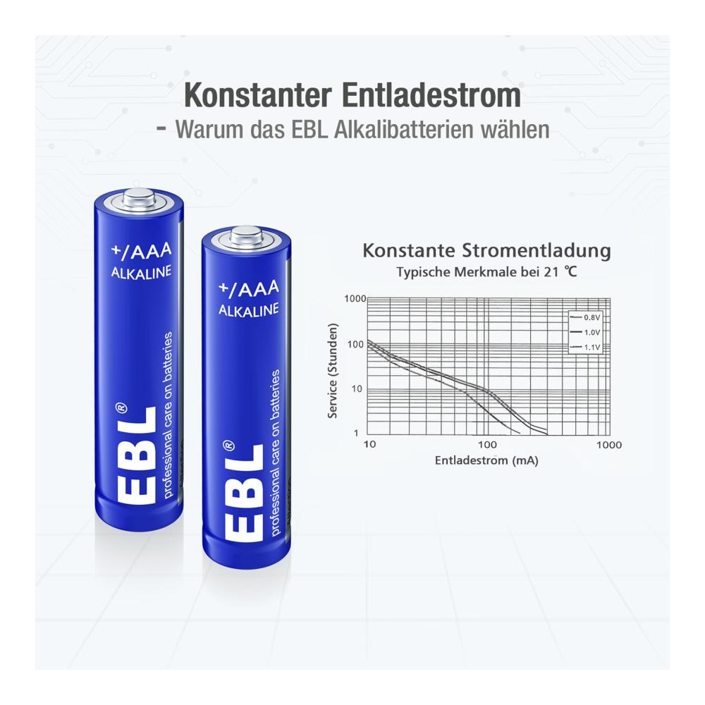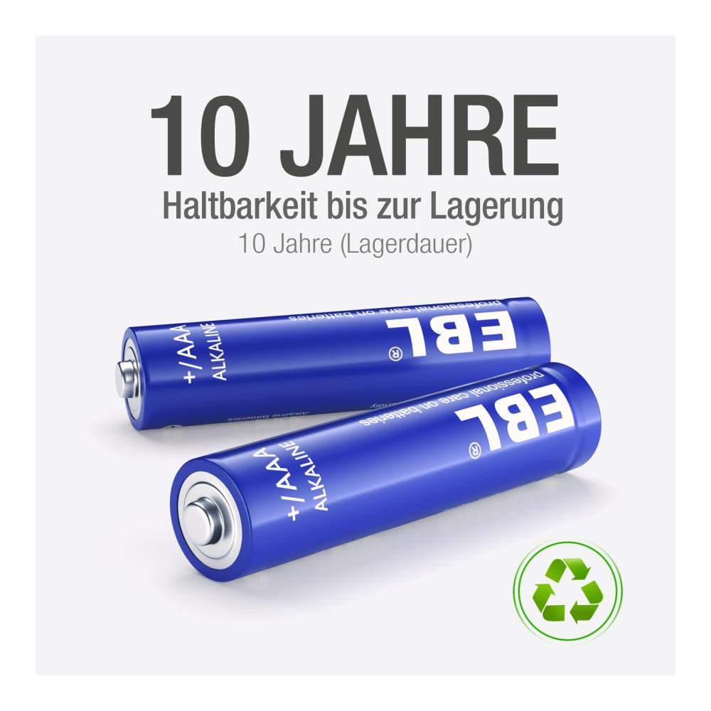 EBL AAA Alkalibatterien halten länger als normale Alkalibatterien. Geeignet für alle Anwendungen.