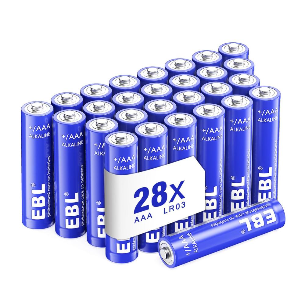 EBL Super Batterien AAA Alkaline 28 Stück in handlicher Verpackung. Preiswert und von guter Qualität. für lang anhaltende, zuverlässige Stromversorgung