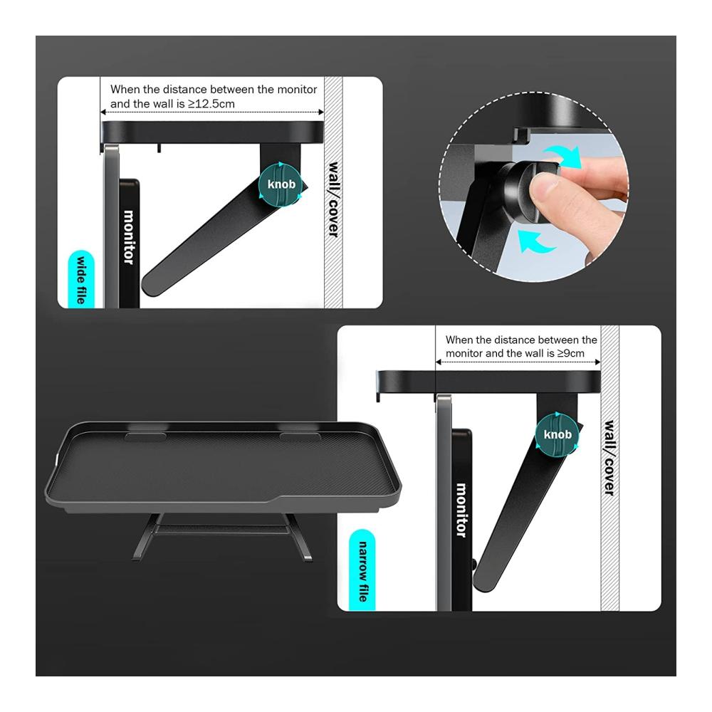 Unser Monitoraufsatzregal bietet eine praktische Lösung für die Organisation Ihres Arbeitsbereichs. Hergestellt aus umweltfreundlichem ABS-Material, verfügt es über eine rutschfeste Oberfläche und Schnurlöcher zur einfachen Platzierung Ihrer Geräte. Die erhöhte Sicherheitsumrandung verhindert versehentliche Stürze, während das einfache Montagesystem eine schnelle Installation ohne Bohren ermöglicht. Mit einem breiten Anwendungsbereich von TV-Set-Top-Boxen bis hin zu Bildern und Topfpflanzen bietet dieses Regal vielseitige Aufbewahrungsmöglichkeiten. Optimieren Sie Ihren Raum jetzt mit unseren Standfüßen