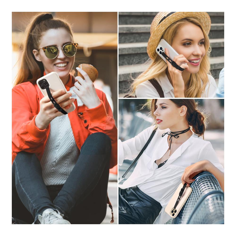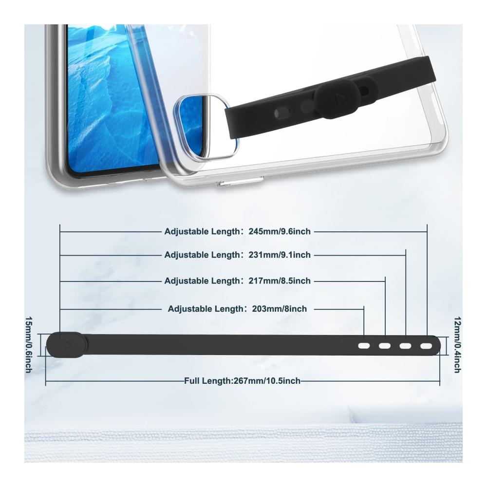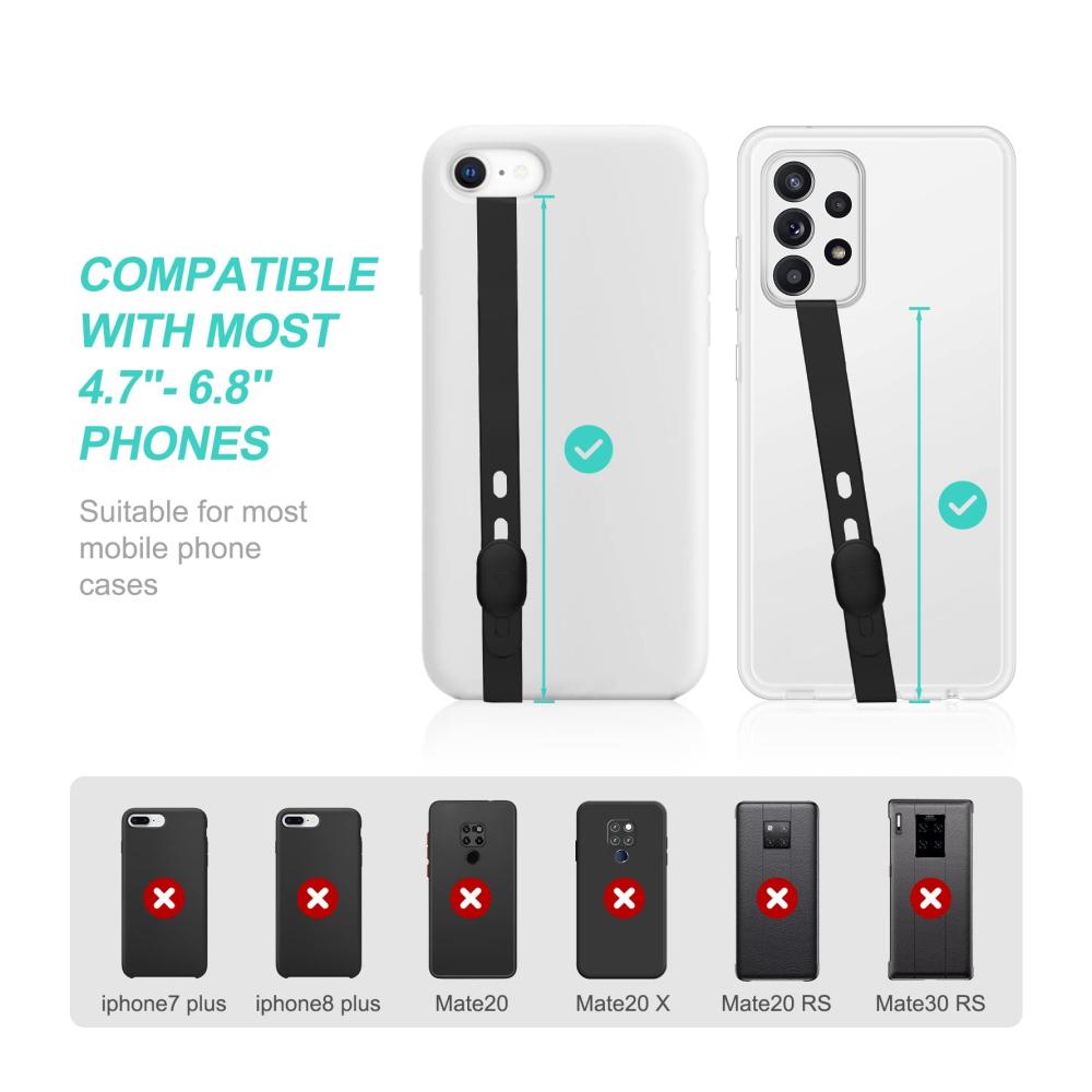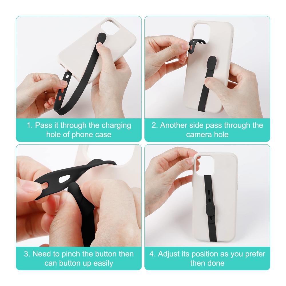【Länge einstellbar】 Das Handy Band verfügt über vier Einstellmöglichkeiten. Ein und dasselbe Band kann für mehrere Handgeräte wiederverwendet werden. Um dies zu erreichen, stellen Sie einfach die entsprechende Länge durch die Einstelllöcher ein.