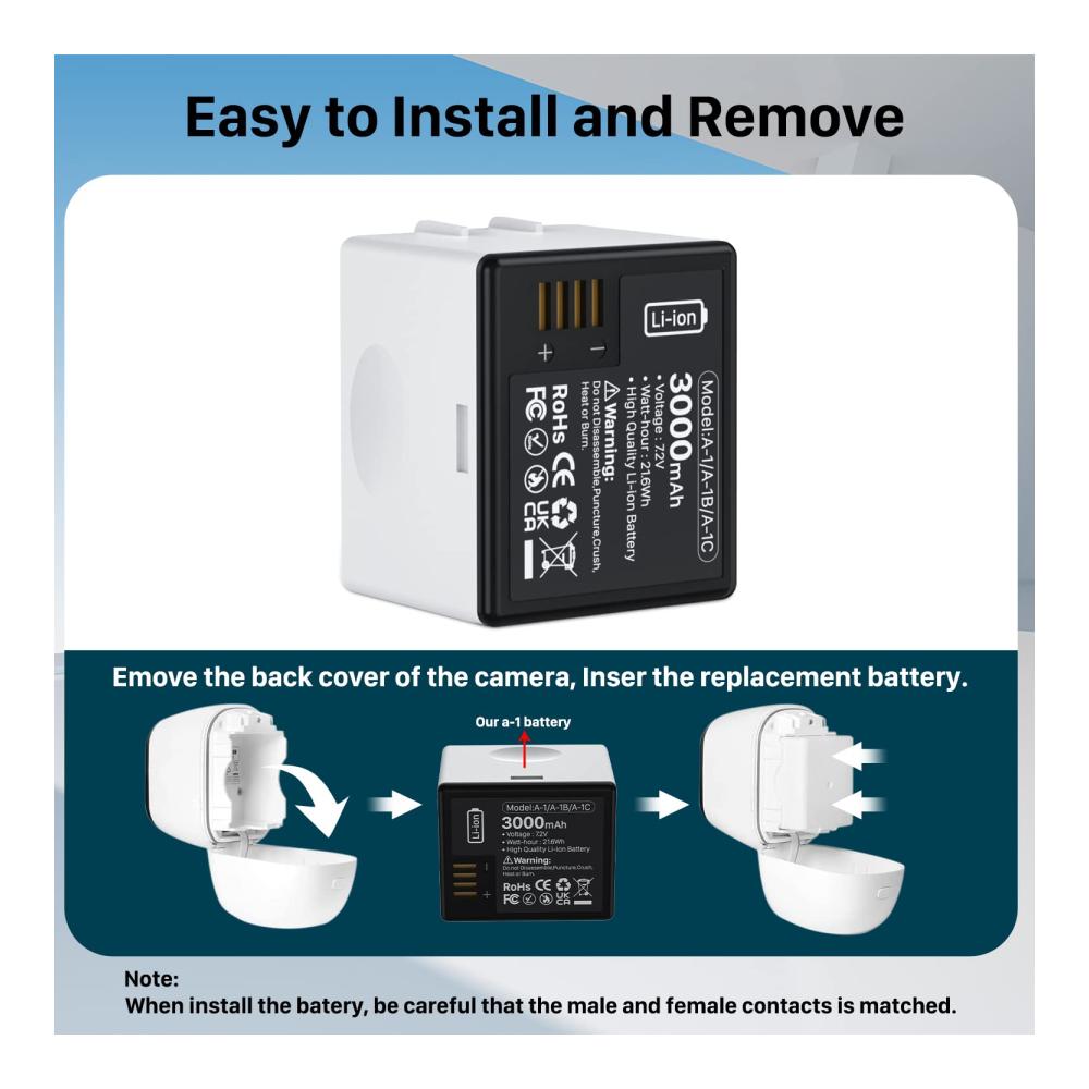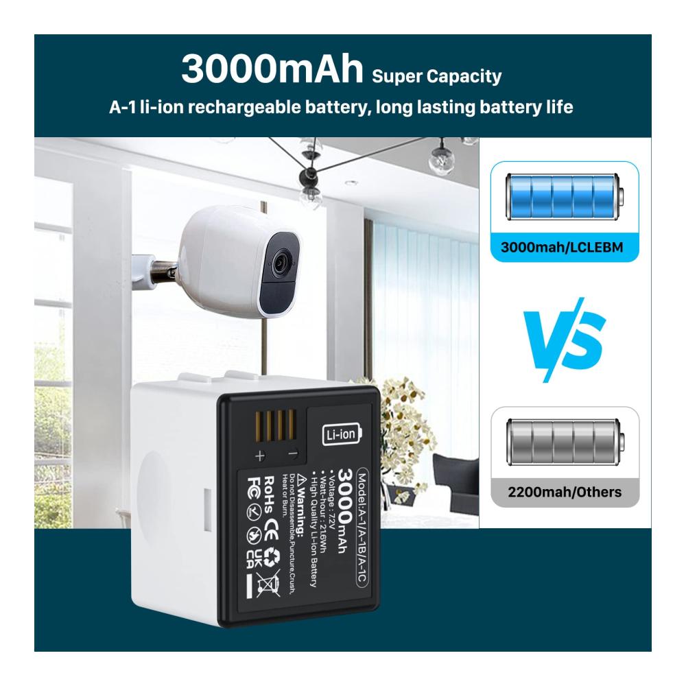 Langlebige Batterie Lebensdauer – LCLEBM 3000mAh A-1 Ersatzbatterien für Arlo, mit neuen Upgrade hohe Kapazität, die Ihre Geräte bringen mehr Standby-Zeit und mehr Leistung zu arbeiten. Lithium-Polymer-Akkuzellen der Klasse A sind für über 800 wiederholte Ladezyklen ausgelegt. Langlebig und Qualität Leistung.