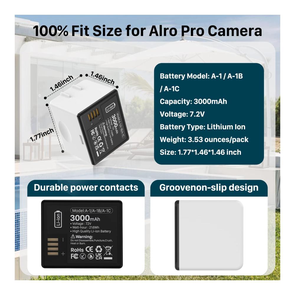 Sicherheitsschutz – Die wiederaufladbaren Akkus für arlo pro bieten eine hohe Leistung und eine lange Nutzungsdauer sowie einen eingebauten Mehrkreisschutz vor Überladung, Kurzschluss, Überhitzung und Überspannung, um Ihnen und Ihrem Gerät Sicherheit zu bieten. Batterien können jederzeit ohne Schaden geladen oder entladen werden, die Lebensdauer der Batterie variiert je nach Nutzung, Einstellungen und Temperatur.