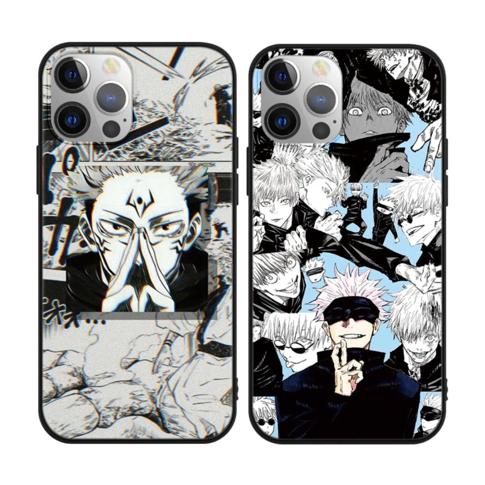 2 Stück Handyhülle für Apple iPhone 12 Pro Max Hülle 6.7 Anime Jungs Jujutsu Kaisen Gojo Satoru Itadori Yuji mit Manga Muster Matt Schwarz Schutzhülle TPU Silikon Case für iPhone12 ProMax