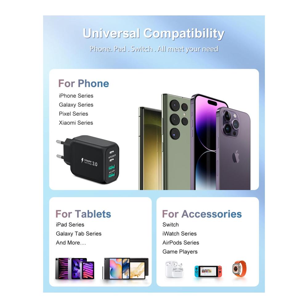 【FÜR ALLE IHRE GERÄTE】: USB-Typ-C-Ladegerät ist kompatibel mit allen Smartphones und Tablets, wie iPhone 15 Pro Max/15Pro/15 Plus/15/14/14 Pro/14 Pro Max/14 Plus/13/13 Pro/13 Pro Max/13 Mini/12/12 Pro/12 Pro Max/12 Mini/11/11 Pro/11 Pro Max, iPhone XS/XR/X/8/7 /6, iPad, iPad Pro, iPad Air, iPad Mini, Samsung Galaxy S22/S21/S20/S10/S9/S8/S7/S6/A12/A13/A22/A32/A52/A53/A71/Note 20 10, LG, Motorola, Google Pixel, Kindle Fire, Tablets, Tablet PCs, MP3/MP4 Player, GPS Geräte etc.