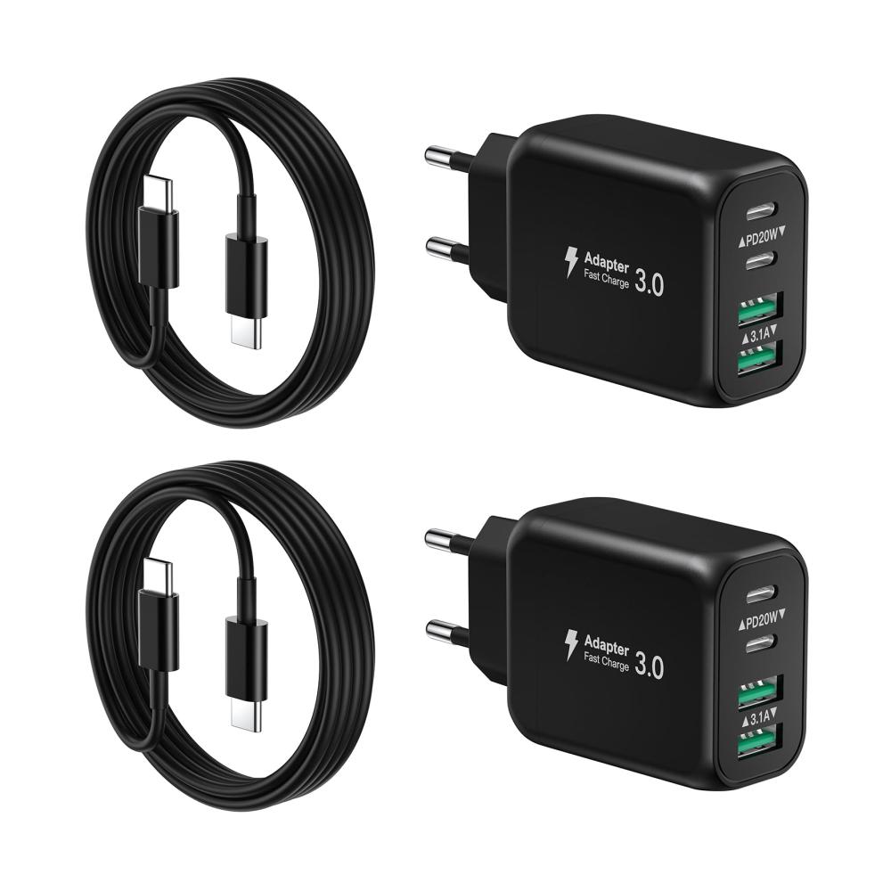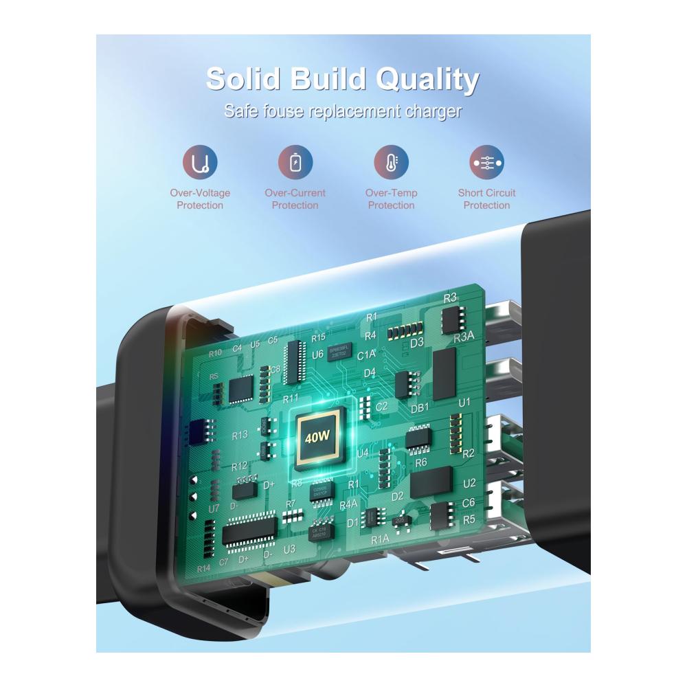 【COMPACT & PORTABLE】: Avatcen 40W USB C Charger Dual Port PD QC Wall Plug Multi-port design with powerful charging speed and compact sizes, lets you take it with you wherever you go, ideal for home, office and traveling. Avatcen offer this 2 pack 40W 4-port USB C wall charger with 2 meter USB C to USB C cable with 18 months hassle-free warranty and 24/7 round-the-clock online customer service. If you have any questions, please feel free to contact us.