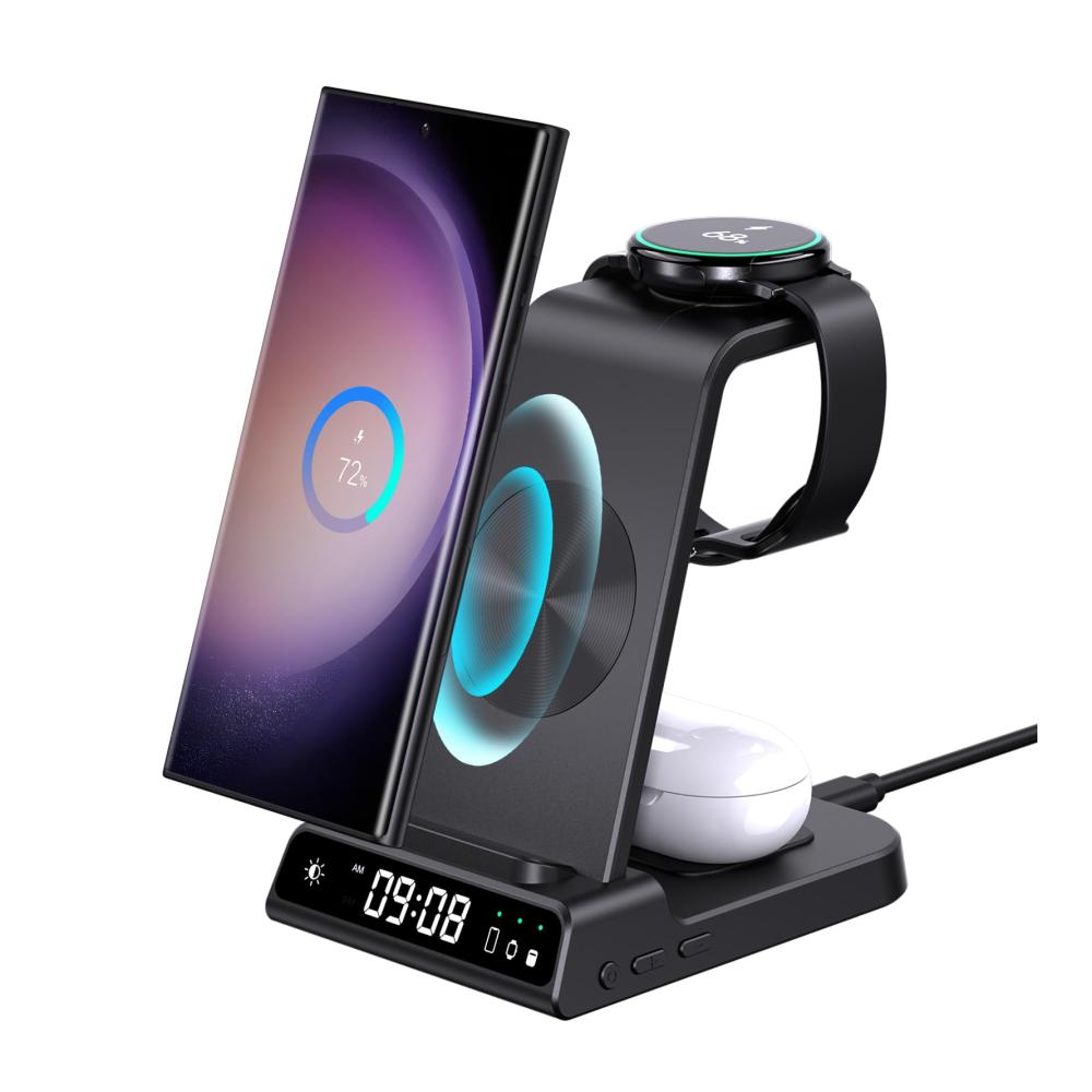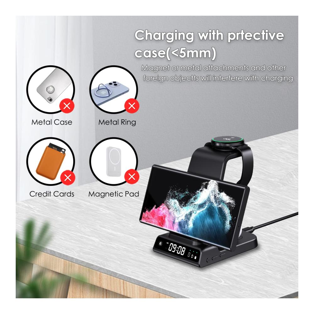 ✿ 【Sichere und effiziente ladestation】Die 3 in 1 ladestation samsung watch und handy für samsung ist mit Temperaturkontrolle, Überladeschutz, Überstrom- und Überspannungsschutz und Fremdkörpererkennung ausgestattet und bietet Ihnen ein sicheres drahtloses Ladeerlebnis.
