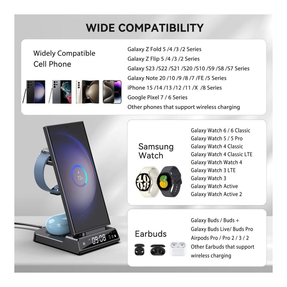 ✿【Universelle Kompatibilität】Diese kabellose Ladestation für samung ist kompatibel mit Samsung Galaxy S24/S23 Ultra/S23/Galaxy S22 Ultra/S22/S22 /S21/S1 /S21 Ultra/S20/S20 /S20 Ultra], Galaxy Z Serie [Flip/Flip 3/Fold 3], Note 20/10/9/8/7, Wireless Charger für Samsung Galaxy Watch 4 40mm 44mm/4 Classic/3/Active 2/1/LTE/Gear S3 S2 Sport,etc. [NICHT für Gear 1/2/live/S/Gear Fit/2/e]; Für samsung Buds/ /Pro/Live. !!!! NICHT für apple watch !!!!