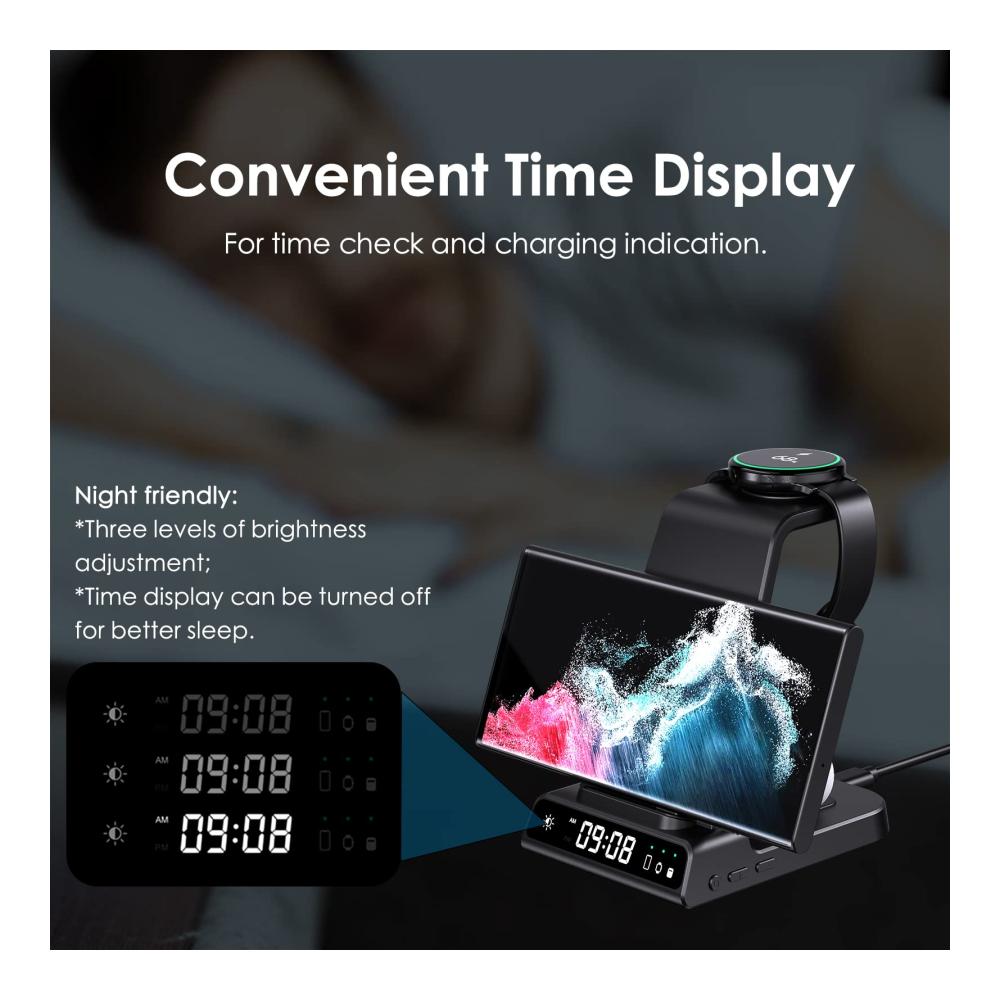 ✿ 【Wireless Charger mit Digitaler Uhr】Die induktive ladestation hat eine spezielle digitale Uhr Basis, mit dimmbarer Einstellung, um Blendung in der Nacht zu vermeiden. Sie müssen keine zusätzliche Uhr kaufen, verwenden Sie einfach die kabellose Ladestation, um die Zeit zu überprüfen, während Sie Ihre Samsung-Geräte aufladen! 4 Modi der zyklischen LED-Lichtstärke: Niedrig, Mittel, Hoch und Aus. Klicken Sie jedes Mal auf das Sonnensymbol, um den Lichtmodus zu ändern.