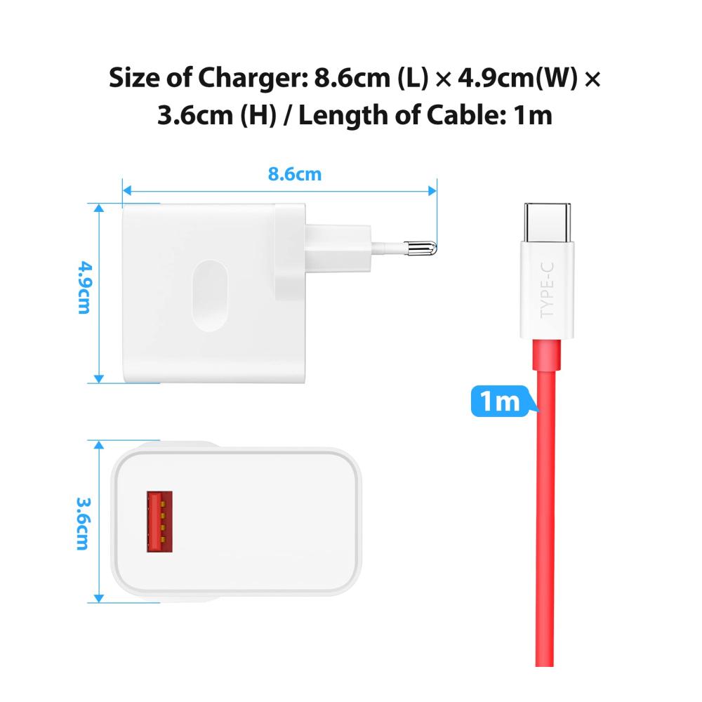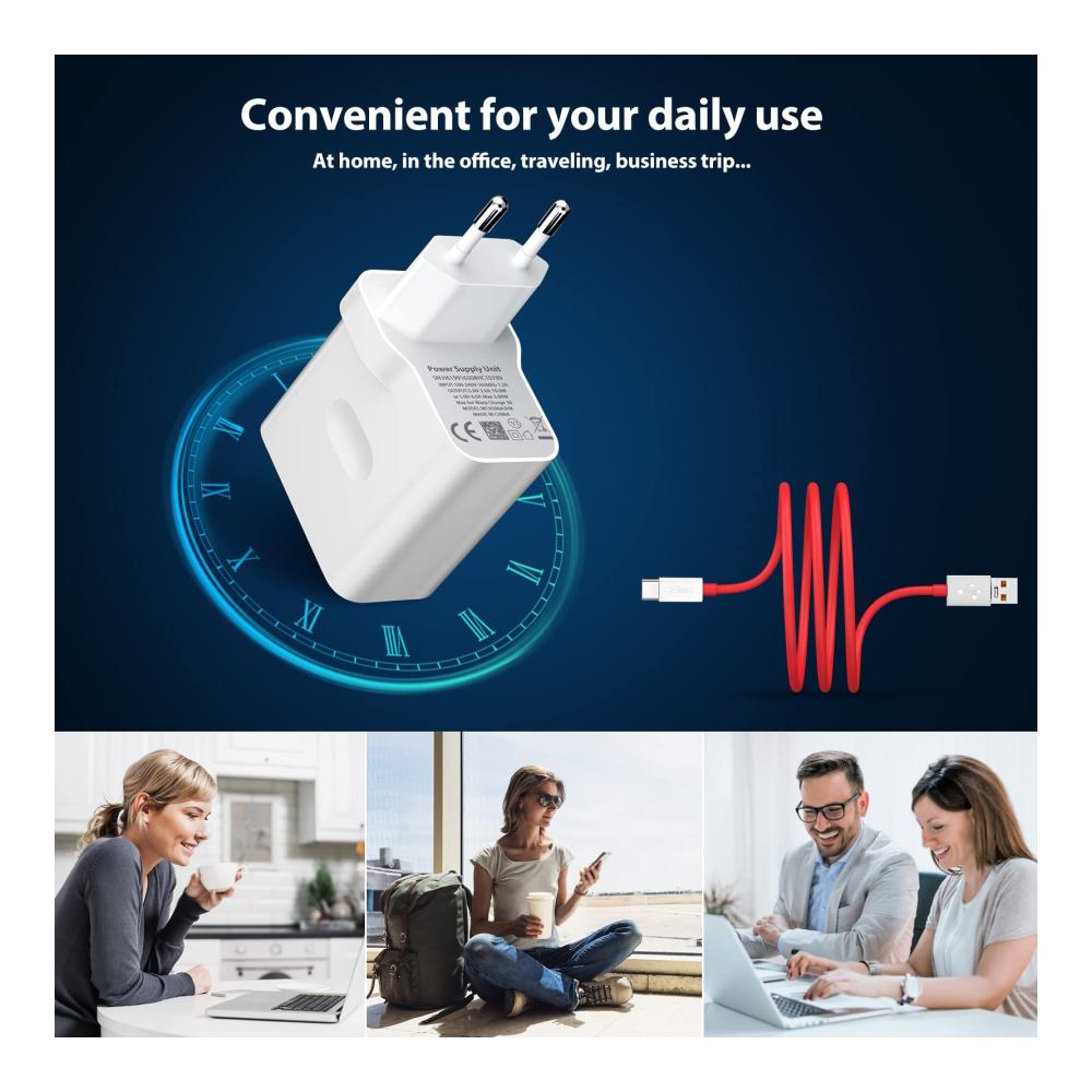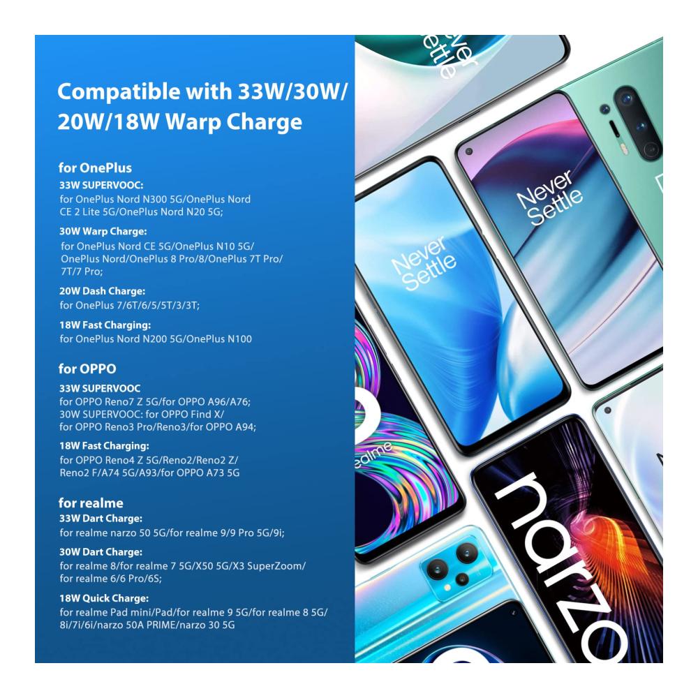 Unser USB-Ladegerät und USB-C-Kabel Set ist die optimale Lösung für Ihre Ladebedürfnisse. Kompatibel mit verschiedenen OnePlus, Realme und OPPO Modellen, bietet es vielseitige Lademöglichkeiten, darunter 30W Warp Charge und robustes TPE-Material für eine sichere und stabile Ladung.