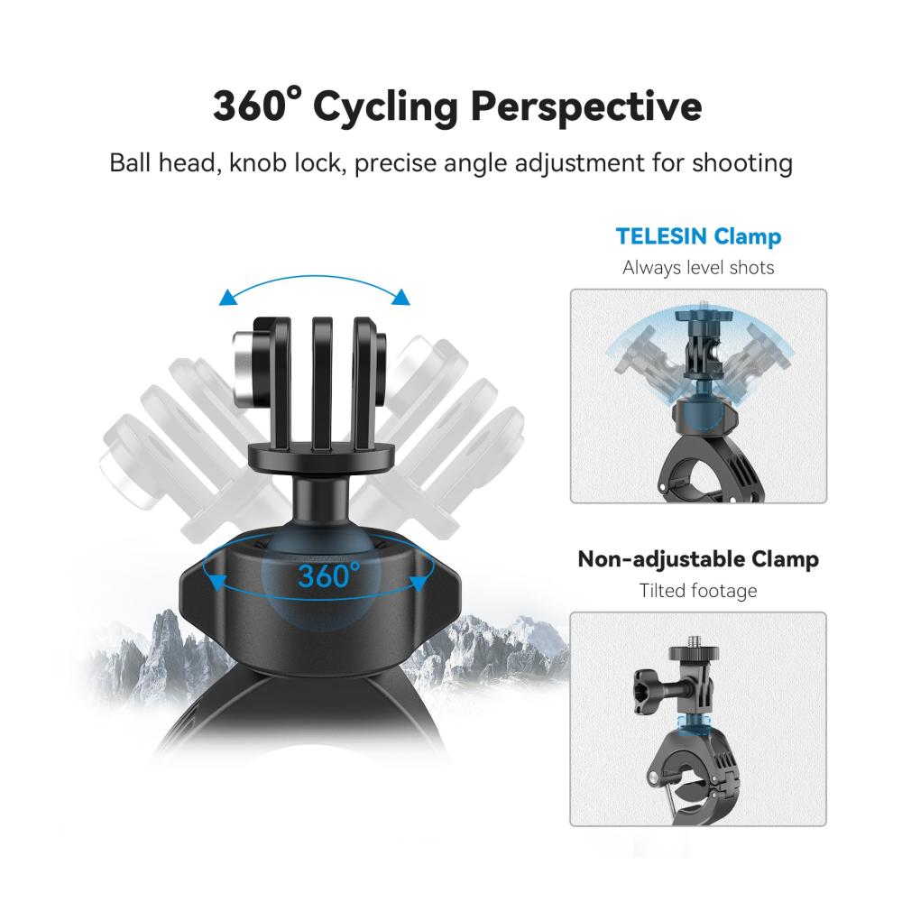 【360°Einstellbarer Winkel】Fahrradschlauchklemme mit 360° drehbarer Kugelhalterung sorgt für den besten flexiblen Winkel für jede Aufnahme und einen schnellen Wechsel der Ansicht.