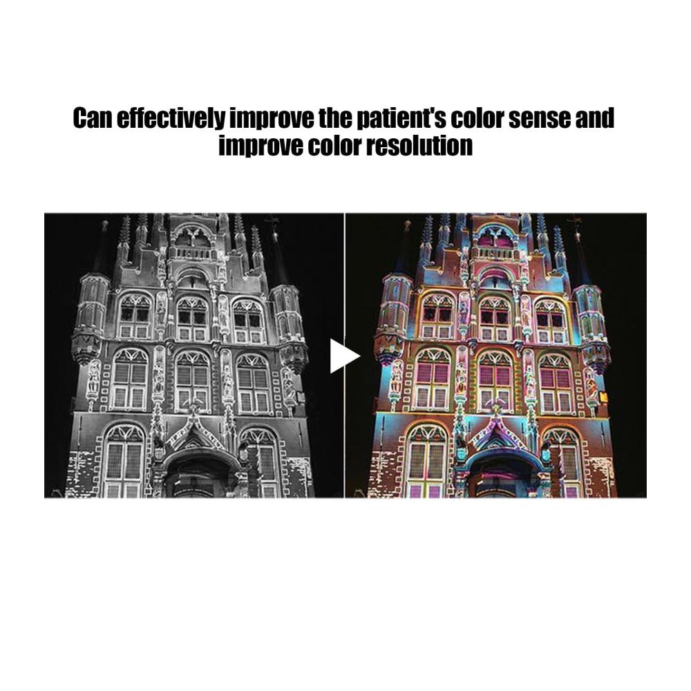 UNTERSCHEIDUNG VON ROTEN UND GRÜNEN FARBEN: Das Design der farbenblinden Brille basiert auf dem Prinzip, dass das Gehirn die chromatische Aberration von Objekten analysiert und vergleicht, wodurch die Fähigkeit, rote und grüne Farben zu unterscheiden, effektiv verbessert wird und Patienten ein intensiveres Farberlebnis ermöglicht