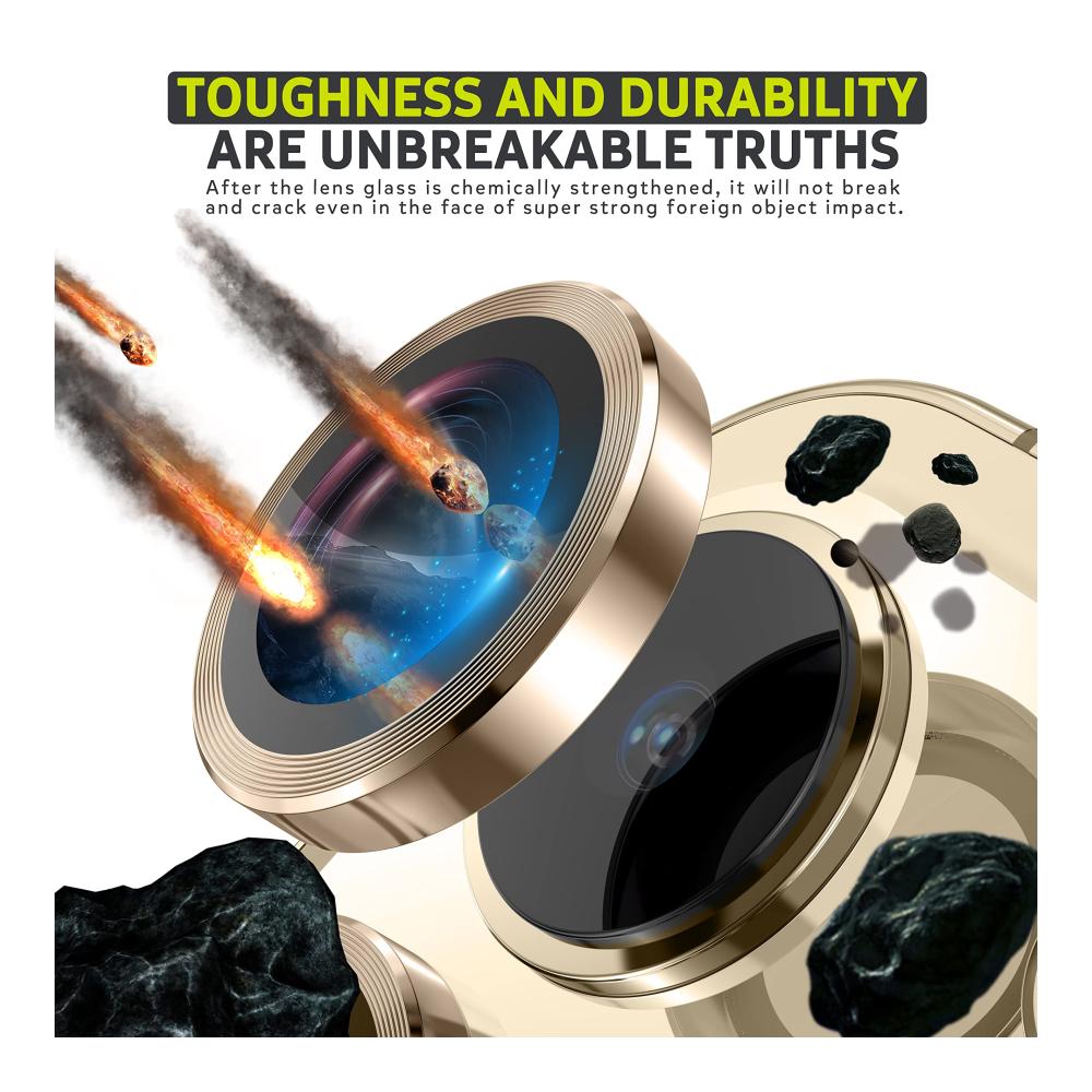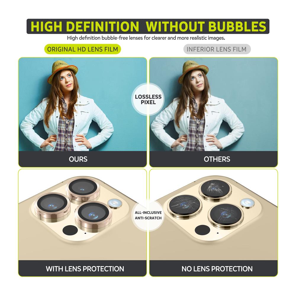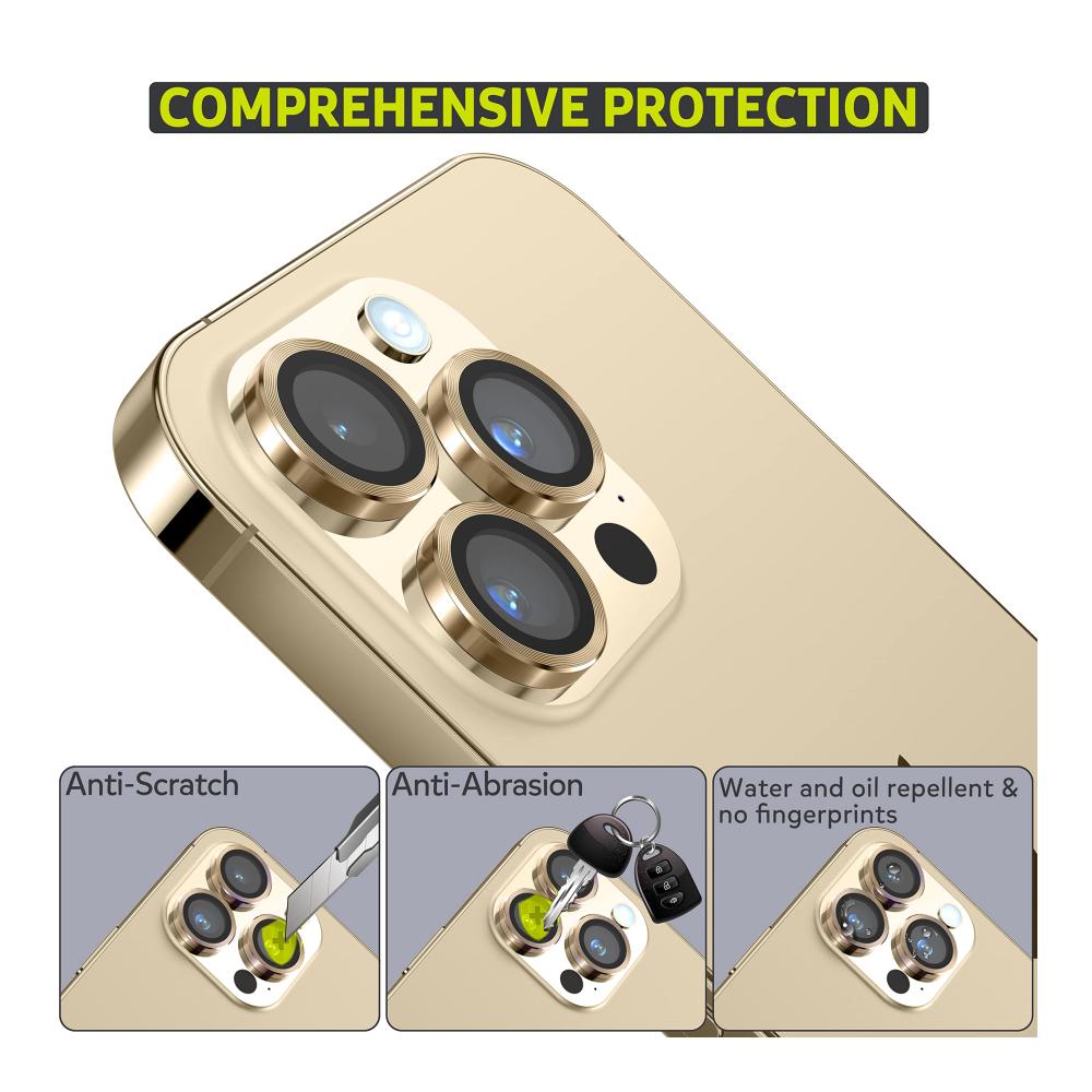 Unser 3er Pack Displayschutzfolien für iPhone 14 Pro/14 Pro Max bietet ultimativen Schutz für Ihre Kamera. Die hochwertige Aluminiumring und gehärtetes Glas-Konstruktion sorgt für HD 360° Schutz, während Anti-Kratzer Eigenschaften Ihre Linse intakt halten. Perfekt für alle, die ihr iPhone-Kameraobjektiv schützen möchten.