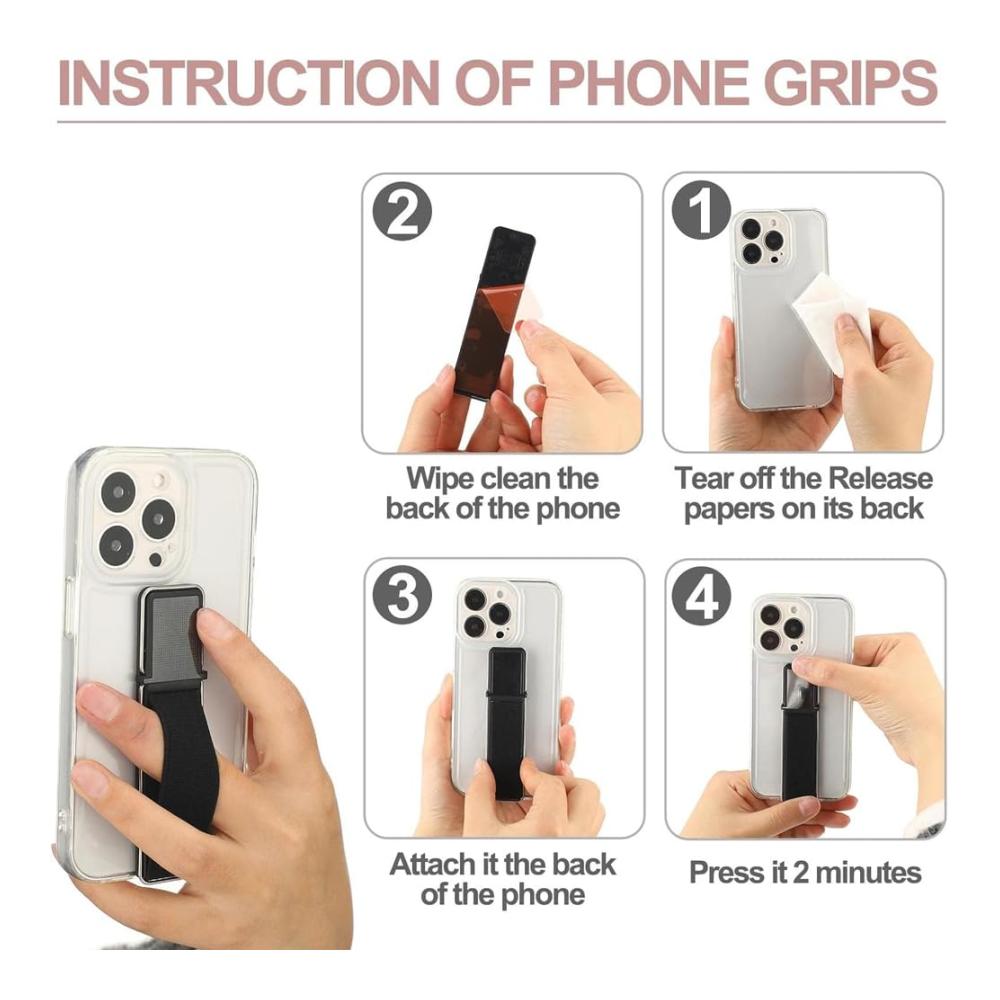 Selbstklebender Telefonständer und -griff — Der Adhesive Phone Stand & Grip wurde entwickelt, um einen sicheren und zuverlässigen Halt für Ihr Smartphone zu bieten. Mit seiner stark haftenden Rückseite sorgt er dafür, dass Ihr Telefon an Ort und Stelle bleibt, und verhindert so versehentliches Fallenlassen und Ausrutschen.