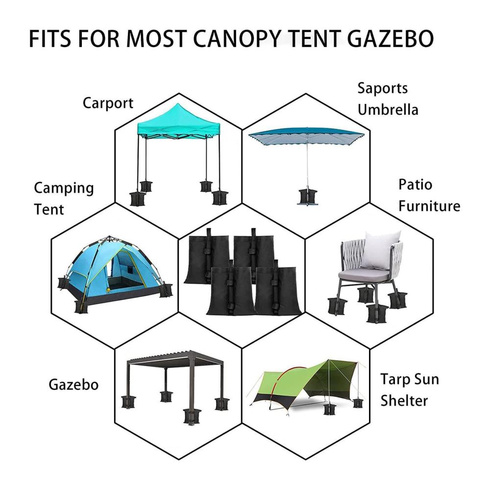 • 💪🏿Stabilisieren Sie Ihren Pavillon, Ihr Zelt oder Ihren Baldachin bei starkem Wind mit diesen robusten Gewichtstaschen. Perfekt für verschiedene Outdoor-Anlässe.
