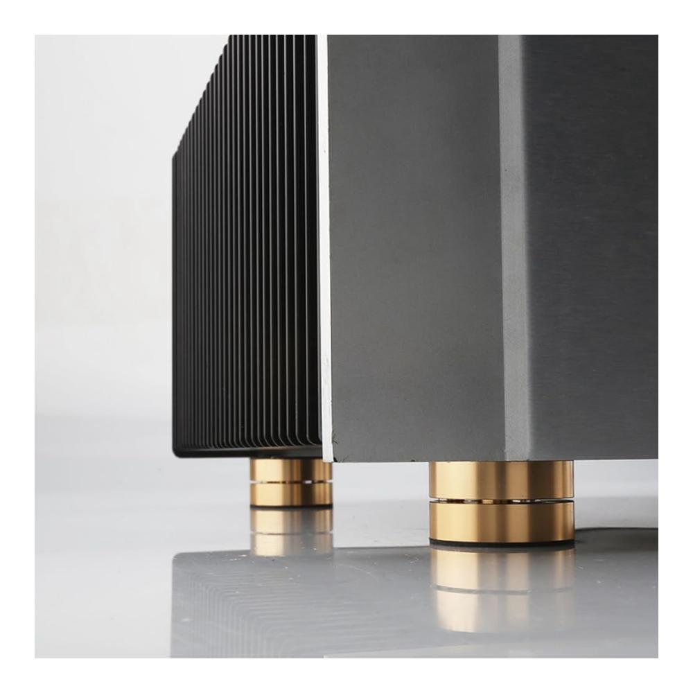 Hergestellt aus hochwertigem Aluminiummaterial, ist es langlebig, lichtecht und nicht leicht zu oxidieren, was eine langfristige Nutzung ohne Qualitätsverlust gewährleistet. Rutschfestes Gummi an den Isolationsfüßen hilft, Vibrationen zu absorbieren und sorgt so für ein hochwertigeres Hörvergnügen und verbessert die Klangklarheit, die Stereowiedergabe und die Basswiedergabe.