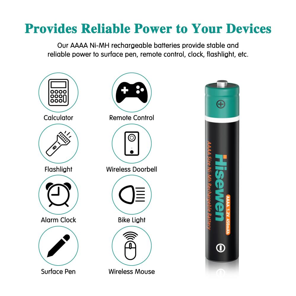 Wiederaufladbare AAAA Akku: Kompatibel mit Surface Pen und den meisten Active Stylus. Auch perfekt für Wecker, Digitalkameras und Universalfernbedienungen.Premium-Akku: 1,2 V/450 mAH, Ni-MH AAAA-Akku. Positiv: Knopf oben