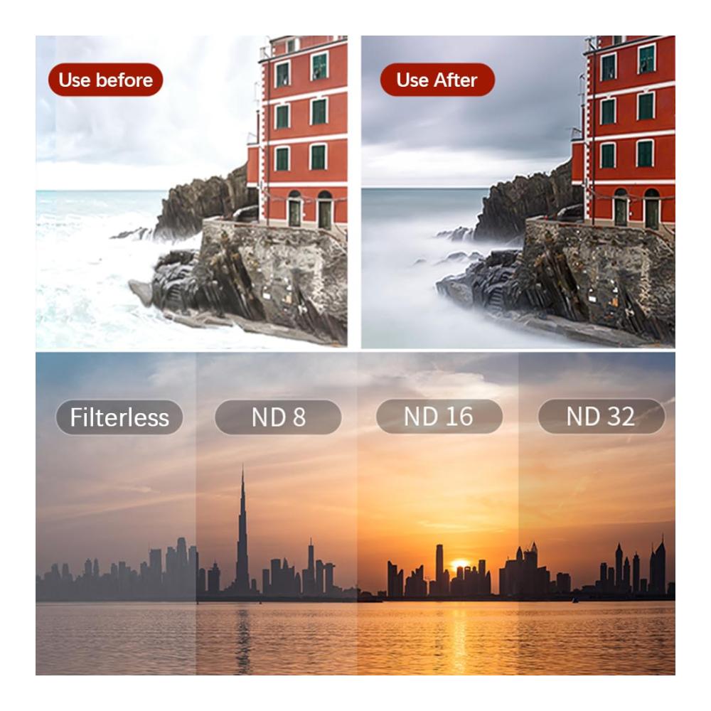 Entdecken Sie unser hochwertiges 4er-Pack Filtersets für Fotografie. Mit CPL-, ND8/ND16/ND32-Filtern erhalten Sie optimale Klarheit und Kontrast. Die Aluminiumrahmen machen sie wasserdicht und kratzfest, ideal für den Outdoor-Einsatz. Dank der entspiegelten mehrschichtigen Beschichtungen erhalten Sie professionelle Ergebnisse. Diese Filtersets sind perfekt kompatibel mit einer Vielzahl von Objektiven. Verbessern Sie Ihre Aufnahmen jetzt mit diesen Filtersets!