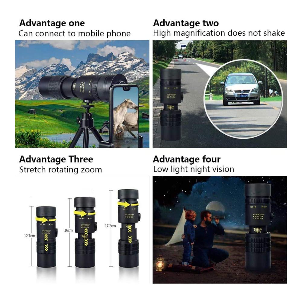 • Unser 4K Monokular-Teleskop ist stark und langlebig und eignet sich perfekt für raue Umgebungen. Dank des hochwertigen HD-Objektivs aus Glas können Sie klare und professionelle Fotos und Videos aufnehmen. Das Design mit Ständer ermöglicht eine bessere Anpassung an Ihr Telefon für schöne Fotos, selbst in rauen Umgebungen. Das Teleskop ist wasserdicht, staubdicht und stoßfest und bietet vielseitige Anwendungsmöglichkeiten für verschiedene Aktivitäten im Freien. Entdecken Sie die Welt um Sie herum mit unserem Monokular-Teleskop!
