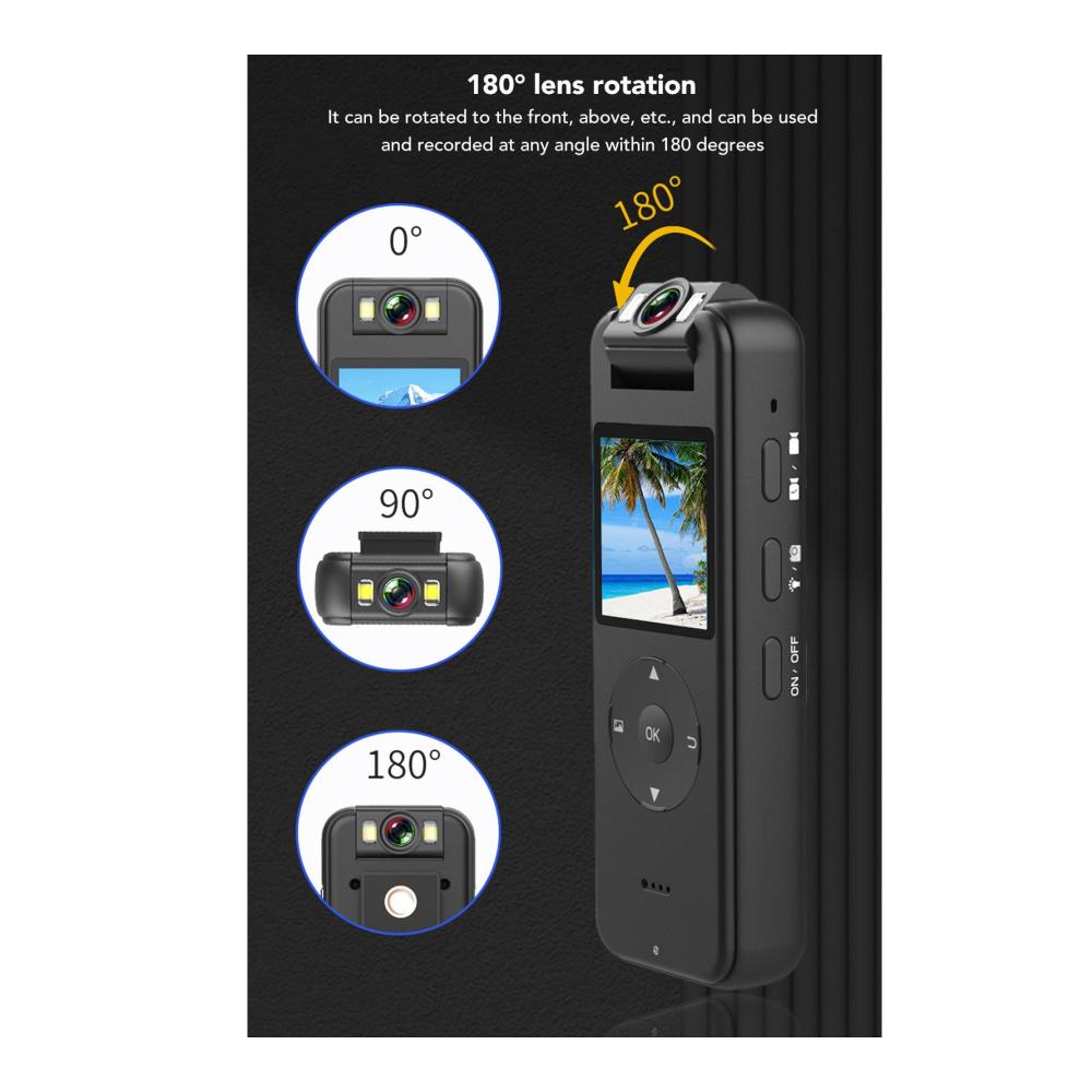 Mit seinem um 180° drehbaren Objektiv, der Möglichkeit zur Aufnahme in verschiedenen Auflösungen inklusive 4K und der Unterstützung für Nachtsicht ist dieser Camcorder ideal für all Ihre Abenteuer, ob bei Tag oder Nacht. Die Integration von WLAN ermöglicht es Ihnen, Ihre Aufnahmen mühelos zu teilen, während die kompakte Größe und der rückseitige Clip für bequemes Tragen sorgen.