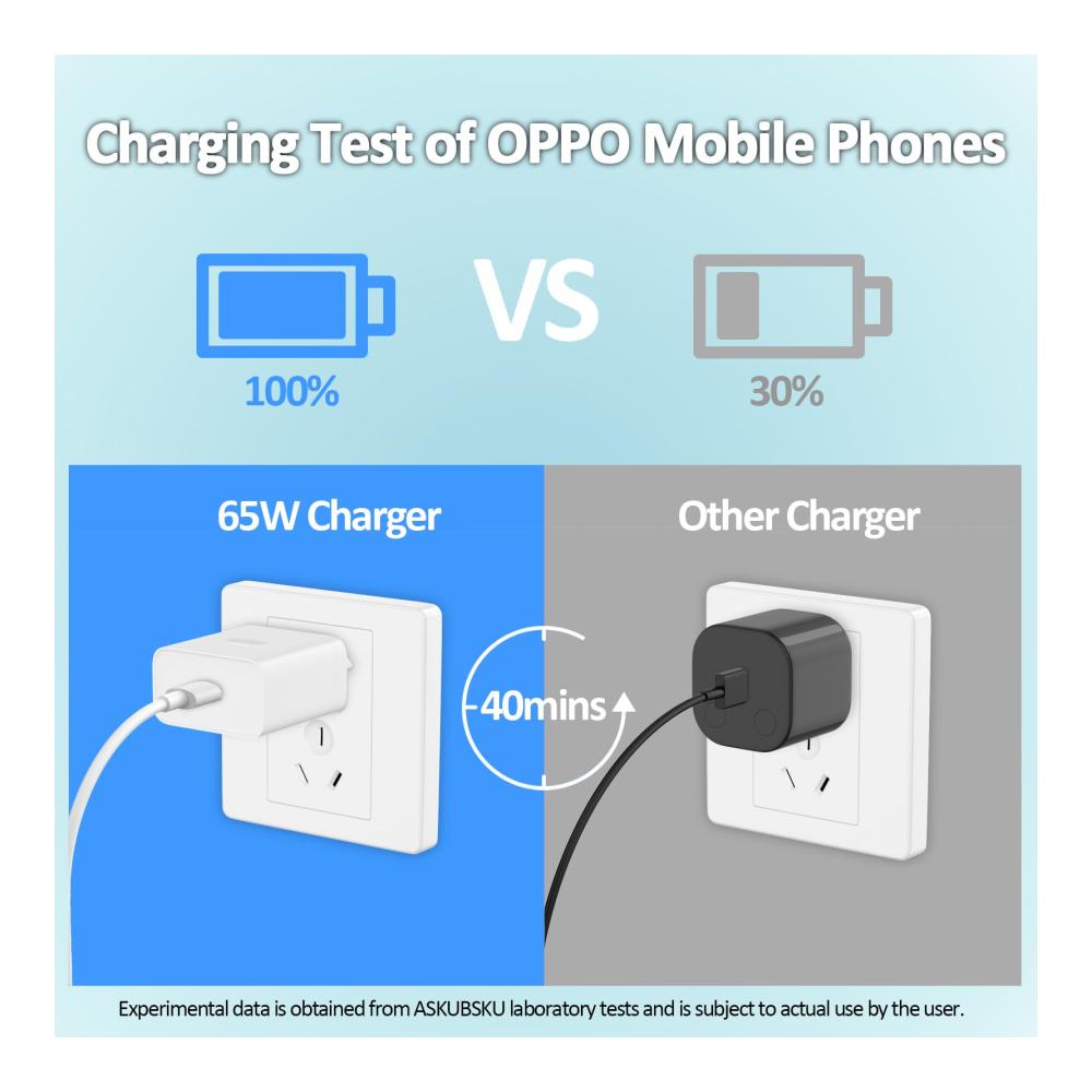 Das Ladegerät Gehäuse ist robust und langlebig. Sie erhalten ein für OPPO USB-Ladegerät und ein 1 Meter USB-C-Kabel für OPPO.