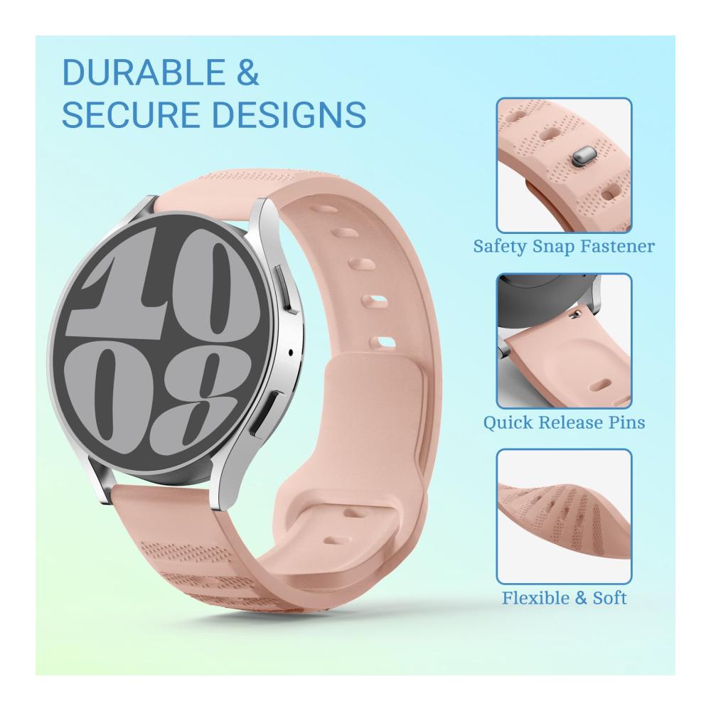 Verleihen Sie Ihrer Samsung Galaxy Watch mit diesen hochwertigen Ersatzarmbändern einen neuen Look. Kompatibel mit einer Vielzahl von Modellen, darunter Galaxy Watch 6, 5, 4 und 3, bieten sie eine perfekte Passform und ein angenehmes Tragegefühl. Das leichte Silikonband ist hautfreundlich und atmungsaktiv, während das verstellbare Design eine bequeme Anpassung ermöglicht. Die dekorative Oberfläche mit kleinen Punktmustern verleiht Ihrer Smartwatch eine stilvolle Note. Wählen Sie aus einer Vielzahl von Farben, um Ihren persönlichen Stil zu ergänzen. Jetzt Ihren Look aufpeppen und Ihre Uhr mit diesen erstklassigen Armbändern aufwerten!