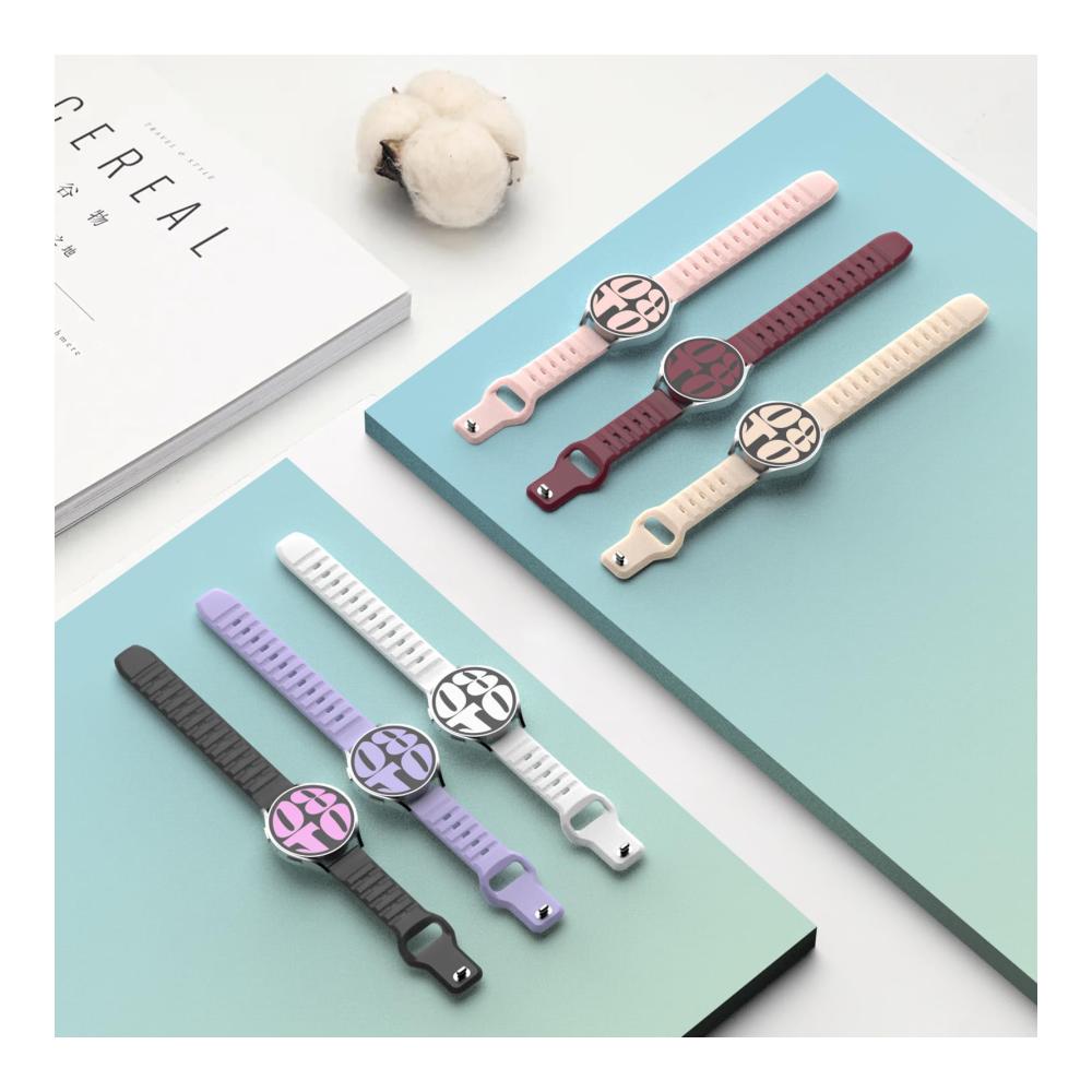 -Das leichte, hautfreundliche Silikonband ist angenehm zu tragen.-Der Verschluss ist so stabil, dass die Uhr nicht versehentlich herausrutschen kann.-Das Design mit mehreren Löchern ist wasserdicht und atmungsaktiv.-Durch die verstellbare Länge ist es einfach, die perfekte Passform für das Handgelenk zu finden.-Die Oberfläche des Armbandes ist mit kleinen Punktmuster dekoriert. Eine Vielzahl von Farben steht zur Verfügung, um Ihrer Smartwatch einen neuen Look zu verleihen.
