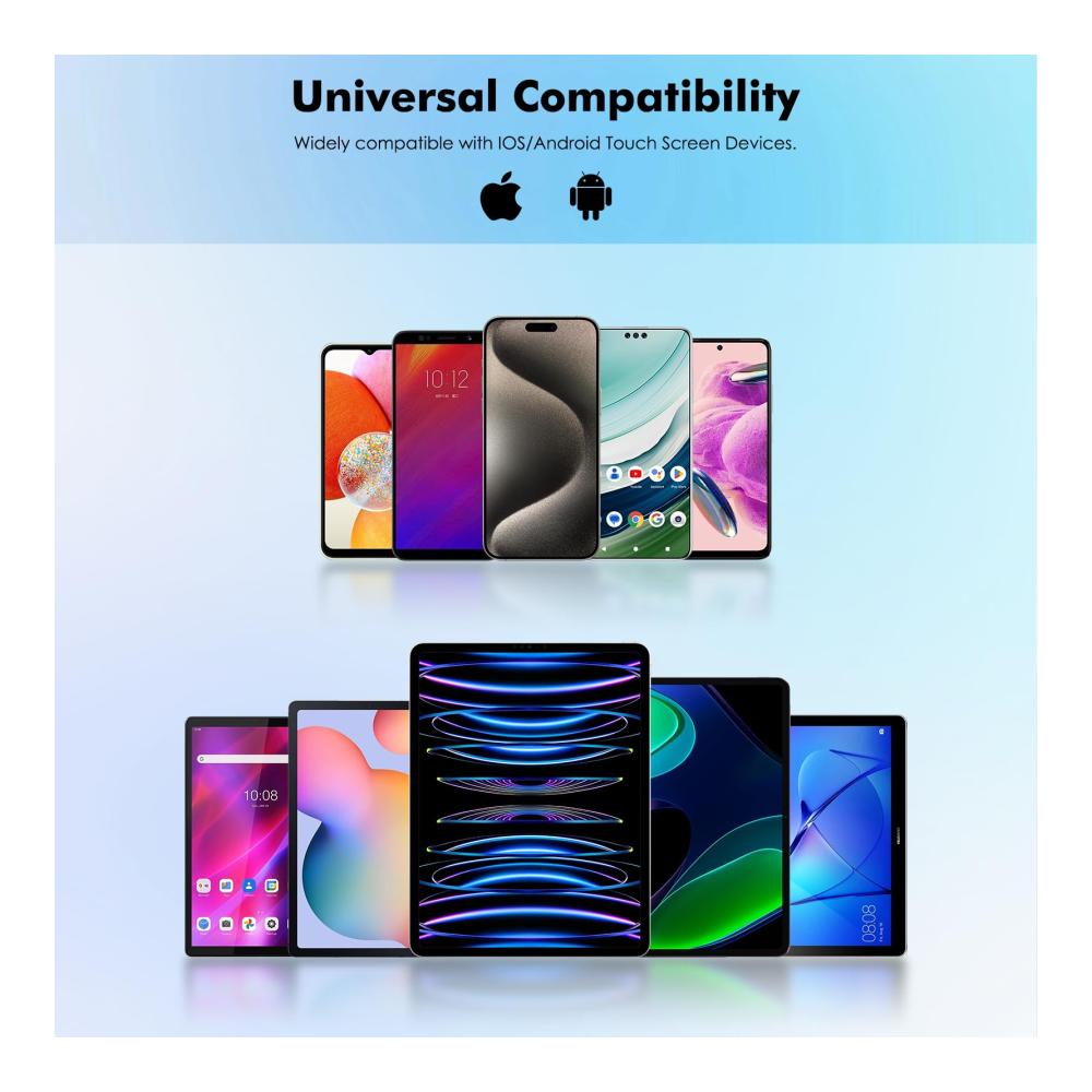 • 【Breite Kompatibilität】Der Touchscreen-Eingabestift ist mit den meisten IOS/Android-Tablets kompatibel, wie z. B. iPad/iPad Air/iPad Mini/iPad Pro, iPhone, Huawei, Lenovo, Xiaomi, HTC, Samsung und anderen Geräten mit kapazitivem Bildschirm. Hinweis: Unterstützt keine Microsoft-, Amazon Fire-, Kindle-, Chromebook- oder EMR-Bildschirme. Durch die Multisystem-Einsetzbarkeit eignet es sich für Ihre Geräte mit unterschiedlichen Systemen. Sie müssen nicht mehrere Stifte für verschiedene Geräte kaufen.
