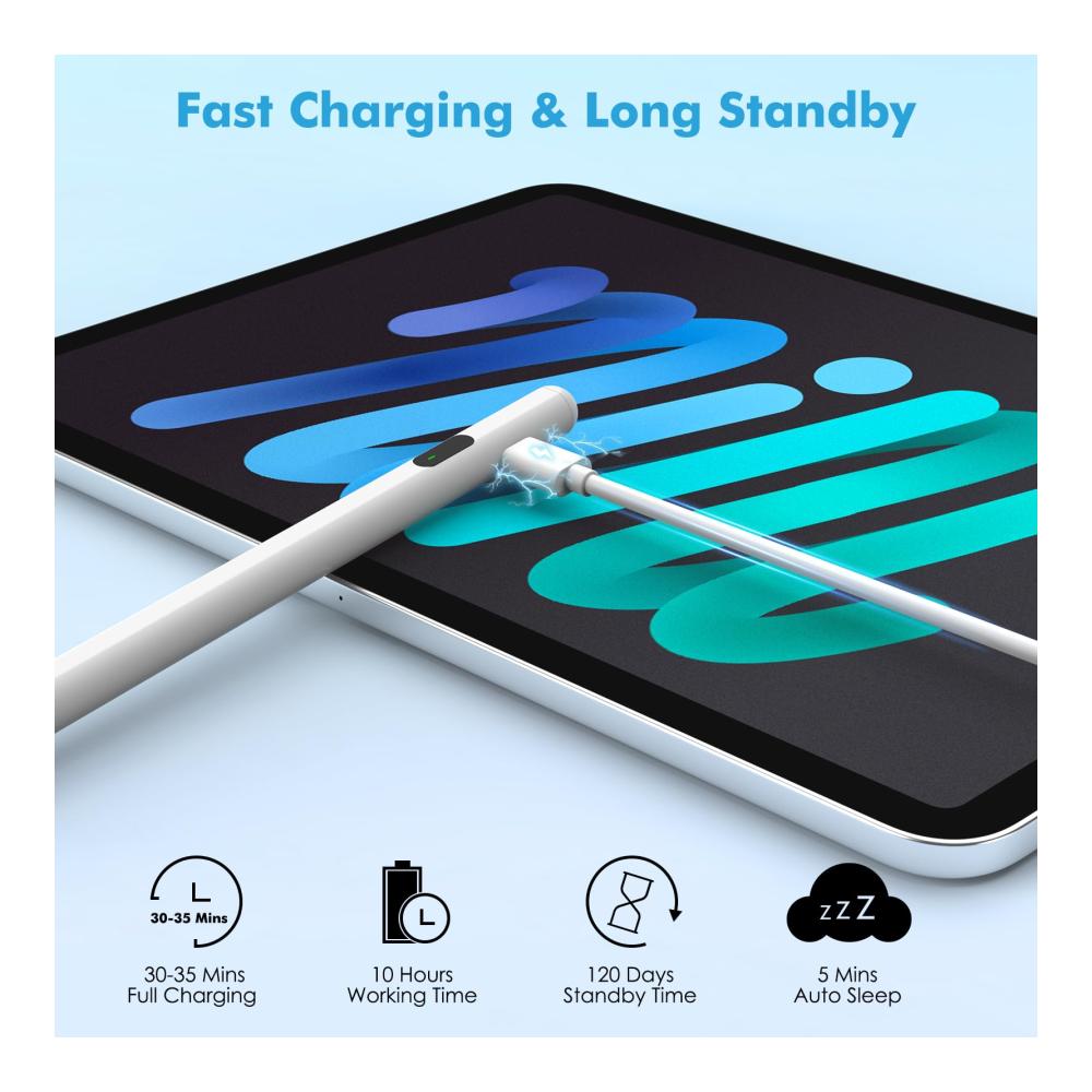 • 【Schnellladung und Auto-Sleep-Design】Unser Stylus Stift lässt sich schnell und bequem mit einem Typ-C-Kabel aufladen, sodass Sie weniger Zeit mit Warten und mehr Zeit mit dem Schaffen verbringen können. Mit dem Typ-C-Kabel kann der Stift in 30–35 Minuten vollständig aufgeladen werden und bietet Ihnen bis zu 10 Stunden Arbeitszeit und 90 Tage Standby-Zeit. Es verfügt über einen automatischen Ruhemodus, der sich nach 5 Minuten Inaktivität ausschaltet.
