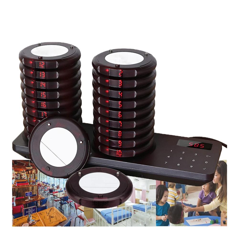 Basisgröße: 270 x 90 x 25 mm. Übertragungsleistung: 240 mW. Spezifikationen: 1 Zug 20 Arbeitsfrequenz: 433 MHz Adaptive Stromversorgung: DC 12 V/2 A Standby-Zeit: 20 Stunden Startentfernung: 500 Meter im offenen Raum Anzahl der Codes: 999 Aufforderungsmodus: Vibration/Piepton/Licht blinkt Packliste: Host: 1 Mobilteil: 20 Stromversorgung: 1 Anleitung: 1 Hinweis: 1. Bitte erlauben Sie bei der manuellen Messung eine Abweichung von 1–30 mm. 2. Aufgrund des Unterschieds zwischen Licht und Bildschirm kann die Farbe des Artikels leicht von der Abbildung abweichen Bild.