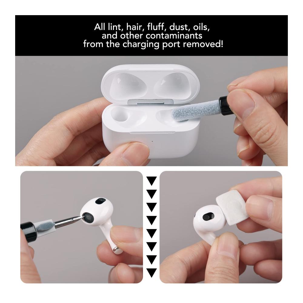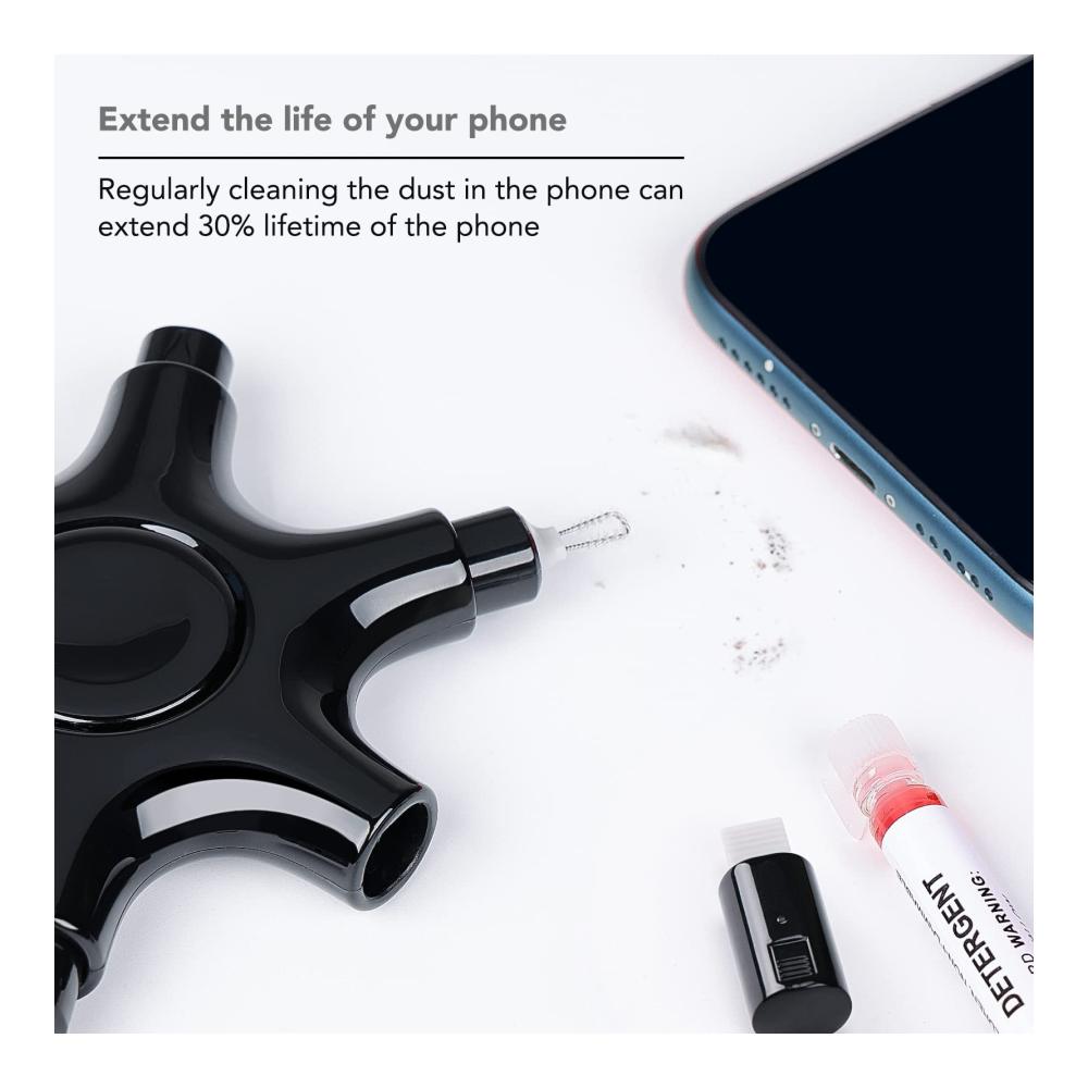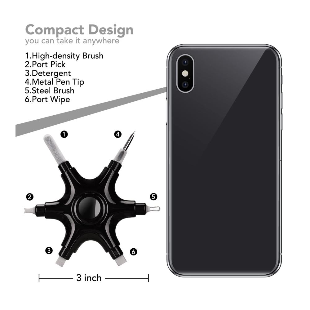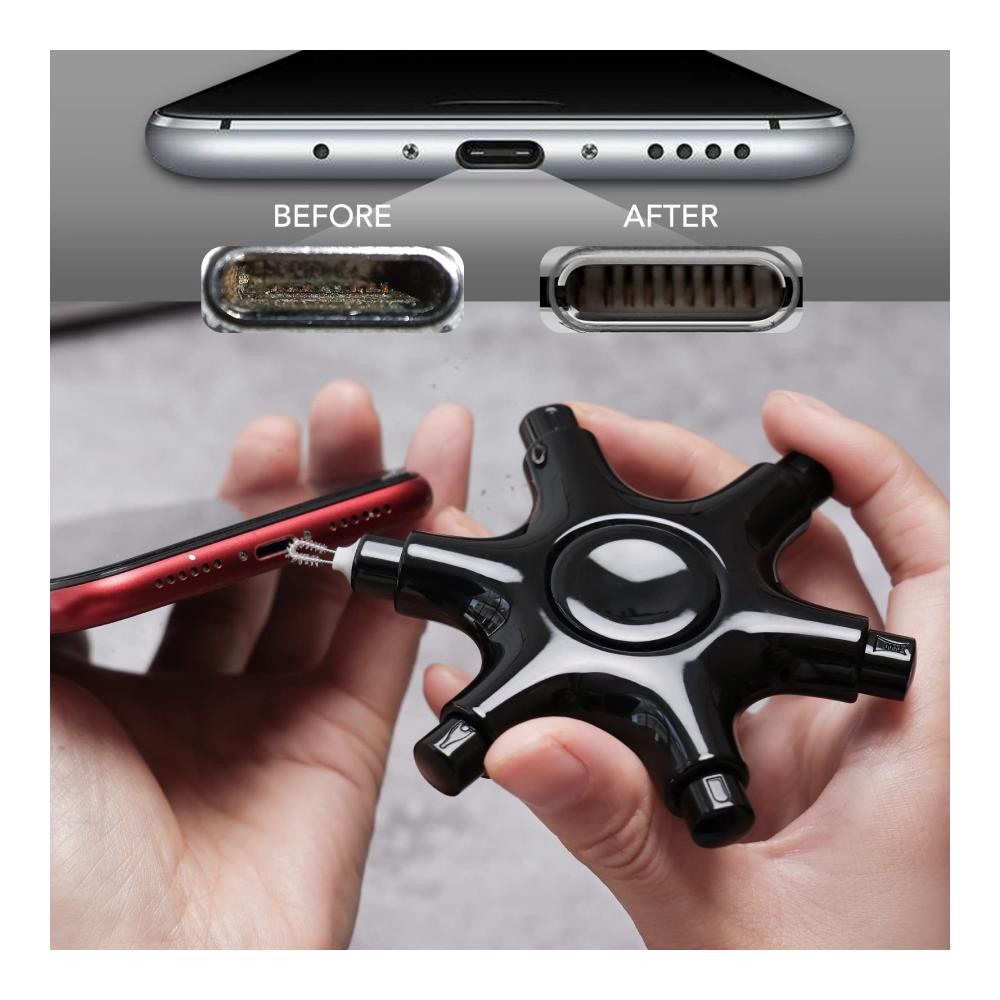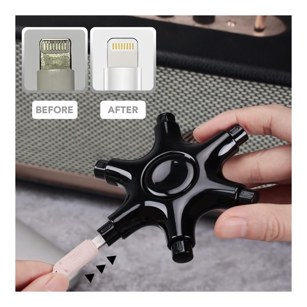 Es beinhaltet Bürsten und Wischer, um Ihren Ladeanschluss gründlich zu reinigen und unzuverlässige Verbindungen zu reparieren. Das integrierte Design sorgt für eine einfache Handhabung und Langlebigkeit.