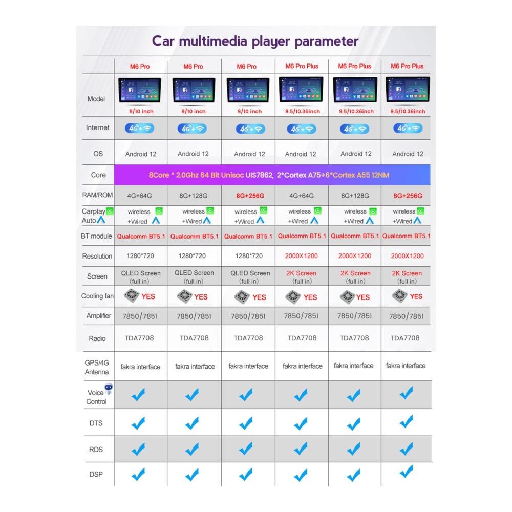 Funktion: Eingebauter Qualcomm BT 5.1Die neue Generation der Qualcomm Bt 5.1-Technologie, im Vergleich zu Bt 5.0 geringerer Stromverbrauch, schnellere Übertragungsgeschwindigkeit. KEINE Verzögerung bei Anrufen, starke Entstörung und stabileres Signal! Unterstützt den DSP 36EQ-ProzessorErhöhen Sie die mehrdimensionalen verlustfreien Surround-Soundeffekte des digitalen Audioverarbeitungsmoduls DSP 36EQ und genießen Sie High Definition audiovisuelles Fest! Integrierte DTS4.1/5.1-Kanal-Surround-SystemeDTS verwendet 4.1- und 5.1-Kanal-Surround-Systeme, die einen perfekteren Klang als Dolby haben: das Der Klang ist dynamischer, weicher und gibt Ihnen das Gefühl, von Klang umgeben zu sein. Integriertes kabelloses Carplay und kabelloses Android AutoErmöglicht Ihnen die Navigation, das Tätigen von Anrufen sowie das Senden und Empfangen Nachrichten senden und Musik hören, während Sie konzentriert bleiben. Legen Sie den Telefonbildschirm in den Player. Integrierte intelligente SprachsteuerungAlle Maschinenserien verfügen über eine integrierte intelligente Sprachsteuerung Hände und machen das Fahren sicherer. Kompatibel mit den LenkradsteuerungsfunktionenEinfaches Wechseln von Liedern und Kanälen und Anpassen der Lautstärke, um Ihnen eine sicherere und angenehmere Fahrt zu ermöglichen. Funktionen – Android 12-Betriebssystem – Bluetooth, WLAN, 4G-Verbindung – für Benz C CLK G Viano Vito W203 W209 W463 W639 Details Typ: GPS-Navigator Bildschirmgröße: 9/9,5 Zoll Bildschirmtyp: HD QLED/2K-Bildschirm Auflösung: 1280*720/2000*1200, unterstützt 1920*1080 Videowiedergabe Kombination: Radio-Tuner, MP3/MP4-Player GPS: Integriertes GPS-Navigationssystem, GPS/GLONASS/BDNS Netzwerk: WIFI/USB/Hot Spot MIC: Integriertes in MIC Zertifizierung: CE