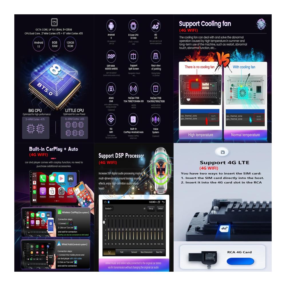 -Dieses automatische Bluetooth-Radio mit GPS-Navigationsplayer, Armaturenbrett-Haupteinheit Produktbeschreibung:WiFi-Version:Prozessor: Quad-CoreBildschirm: Hochauflösender TouchscreenAuflösung: 1024*600Bluetooth / WIFI / USB-Verbindung: UnterstützungMusik/Video: SupportUKW-AM-Radio: UnterstützungOriginale Lenkradsteuerung: UnterstützungOnline-Karte/Offline-Karte: SupportMirror-Link: Unterstützt IOS und AndroidOriginal Rückfahrradar: SupportRückfahrkamera: unterstützt AHD 720P, wenn die originale Rückfahrkamera nicht verfügbar ist, verwenden Sie bitte die Rückfahrkamera in unserem PaketFrontkamera: Unterstützt USB-Typ4G WIFI-Version (einschließlich der Funktionen der WiFi-Version, außer Mirror-Link):CPU: Octa-CoreBildschirm: IPS-TouchscreenAuflösung: 1280*720DSP: eingebautRDS: eingebautCarplay und Android-Auto: eingebautLüfter: EingebautRückfahrkamera: Unterstützt AHD 1080P4G-SIM-Karte: UnterstützungDie Navigation umfasstHeadunit (Bildschirm)RückfahrkameraKabelbaum für die Installation benötigtZur Erinnerung: Bei der Installation von Geräten, die ein gewisses Maß an Geschick und Fachwissen erfordern, können Sie sich an einen professionellen Autotuner wenden, um Hilfe von einem professionellen Installateur zu erhalten.