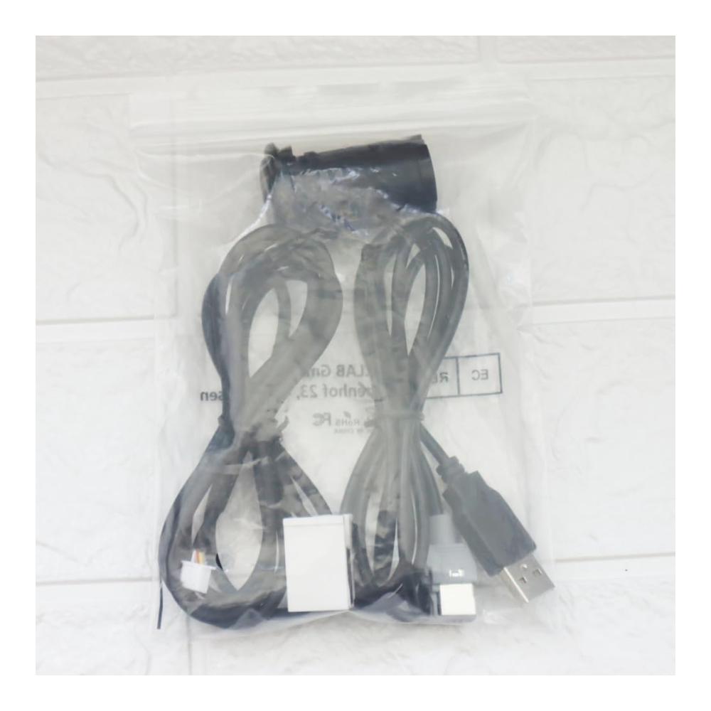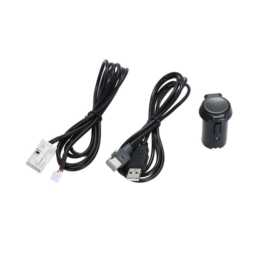 Das Set enthält 1 x 4-poliges graues Kabel, 1 x AUX-USB-Panel und 1 x 12-poliges weißes Kabel für eine vollständige Installation.
