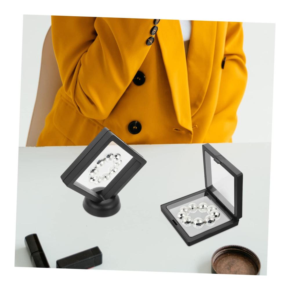 Paketliste 15 x DisplayboxenMerkmale -Größe: 9,00 x 9,00 x 2,00 cm/3,54 x 3,54 x 0 Vitrinen für Sammlerstücke.-Material: Schmuckständer-Farbe: schwarzer Kristall