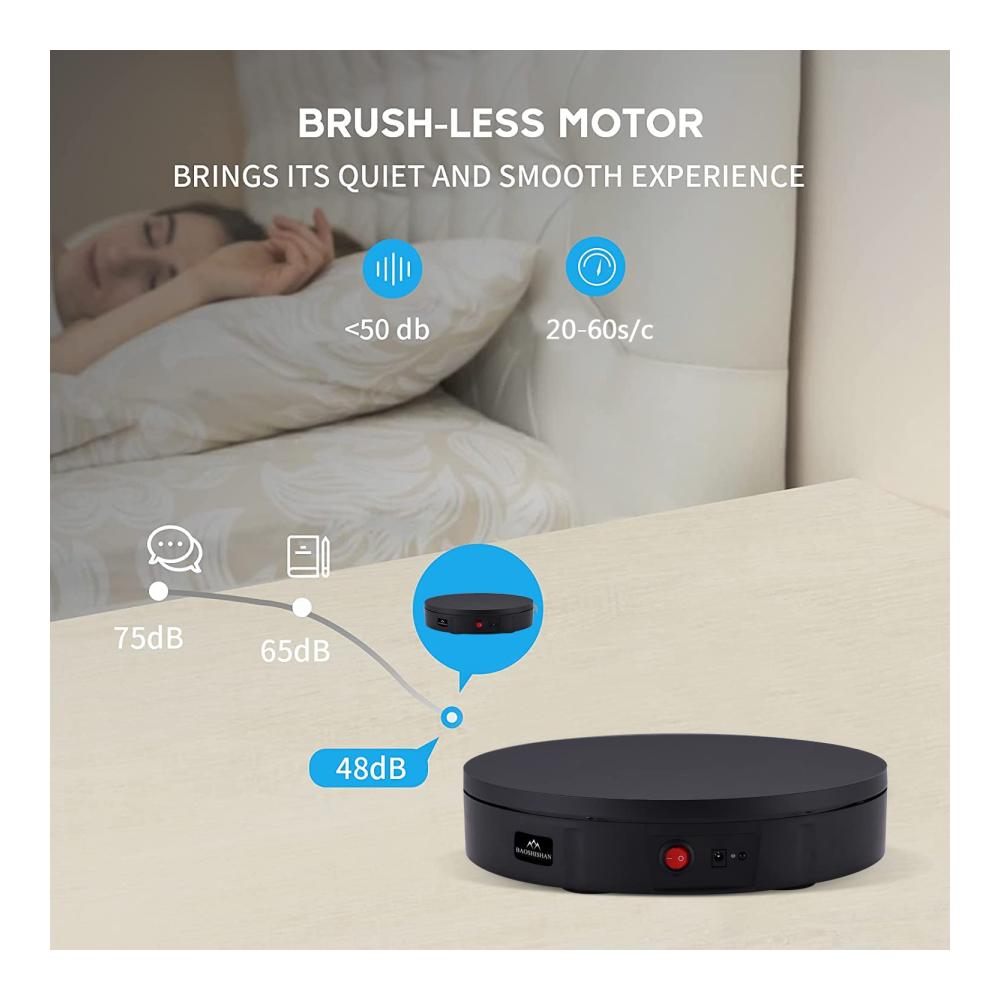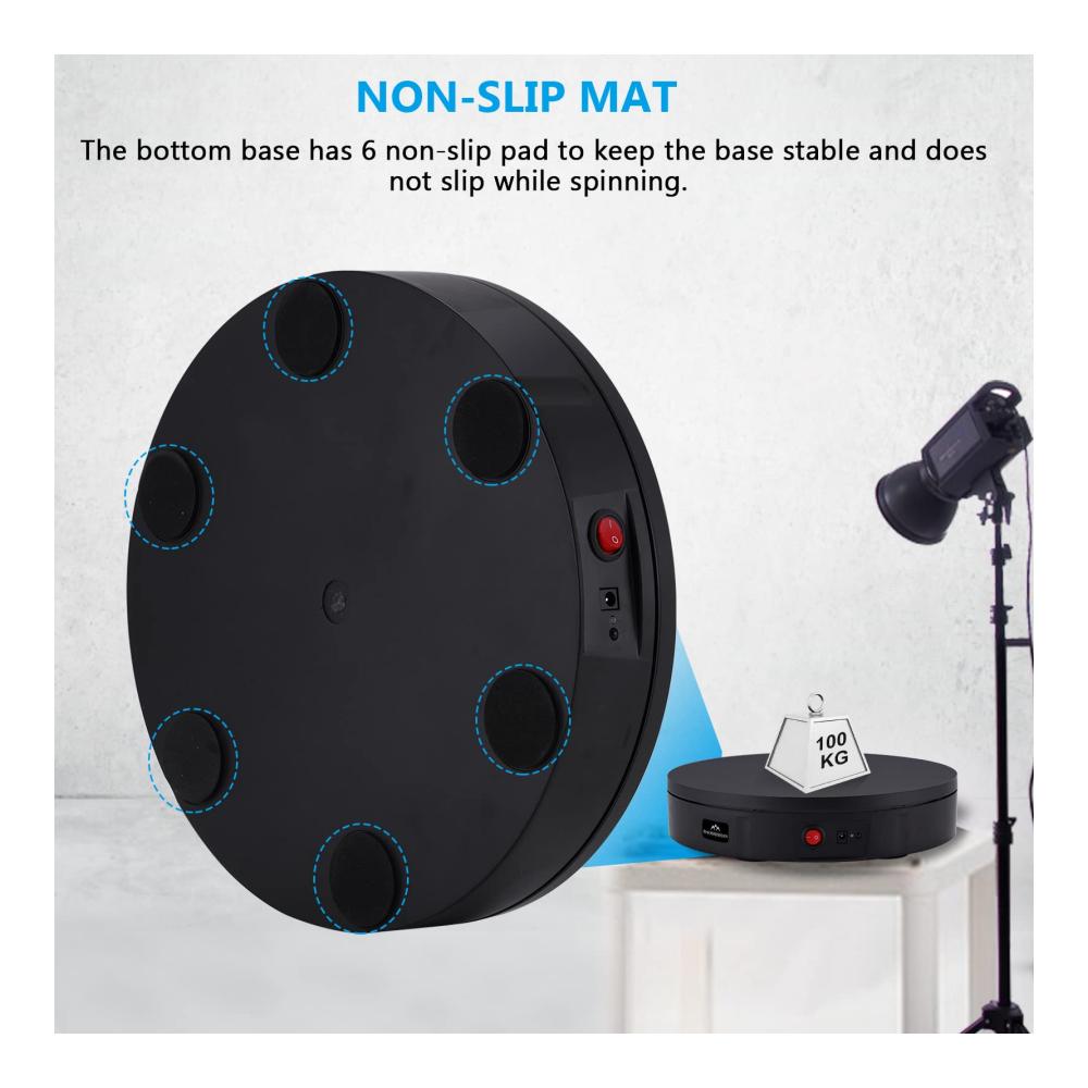 • [30CM 100KG] Der Drehteller hat einen Durchmesser von 30cm und eine Last von 100kg. Leistungsstarker Motor und hochwertiges ABS-Material sorgen für eine reibungslose Drehung des Drehtellers und geringe Geräuschentwicklung.