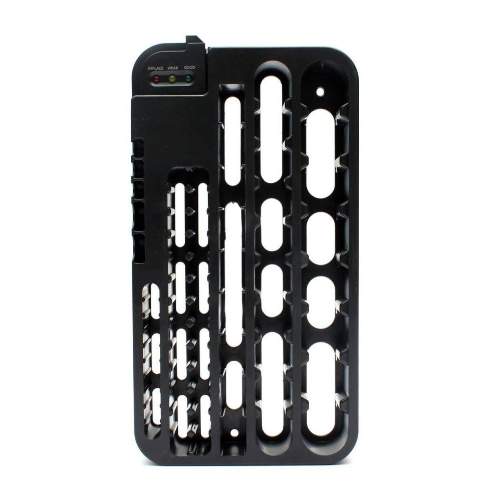 Mit diesem Batteriehalter haben Sie alles griffbereit und können jederzeit den Ladezustand Ihrer Batterien überprüfen. Nie wieder umständliches Suchen nach Batterien in Schubladen oder Schränken. Diese Aufbewahrungsbox sorgt für Ordnung und Übersichtlichkeit in Ihrem Batteriebestand. Bestellen Sie jetzt und genießen Sie die einfache und praktische Aufbewahrungslösung für Ihre Batterien.