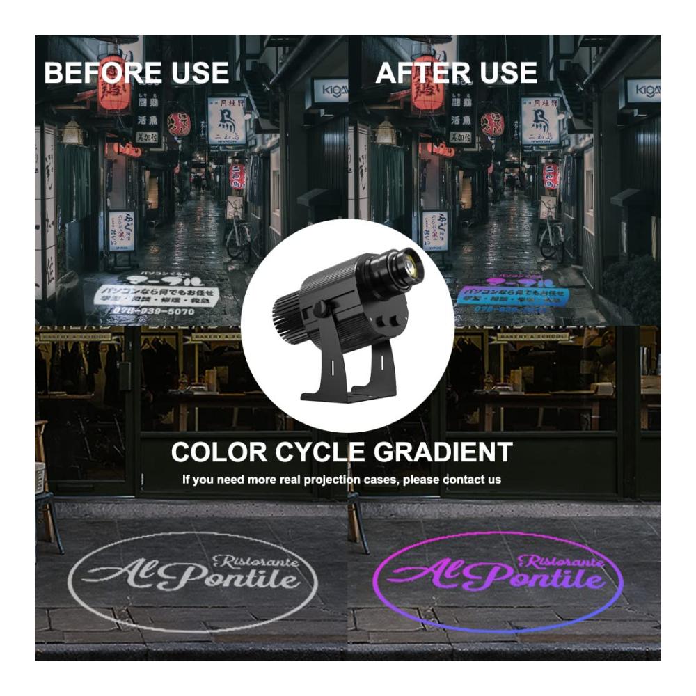 [Verbesserte GOBO -Projektionslampe]: Die verbesserte Version der Projektionslampe kann die Farbe Ihres Logos anreichern und die Wirkung der Gradientenfarbe des Logos erhöhen. Neuartige und einzigartige Lichtprojektionsmethoden werden Kunden anziehen.
