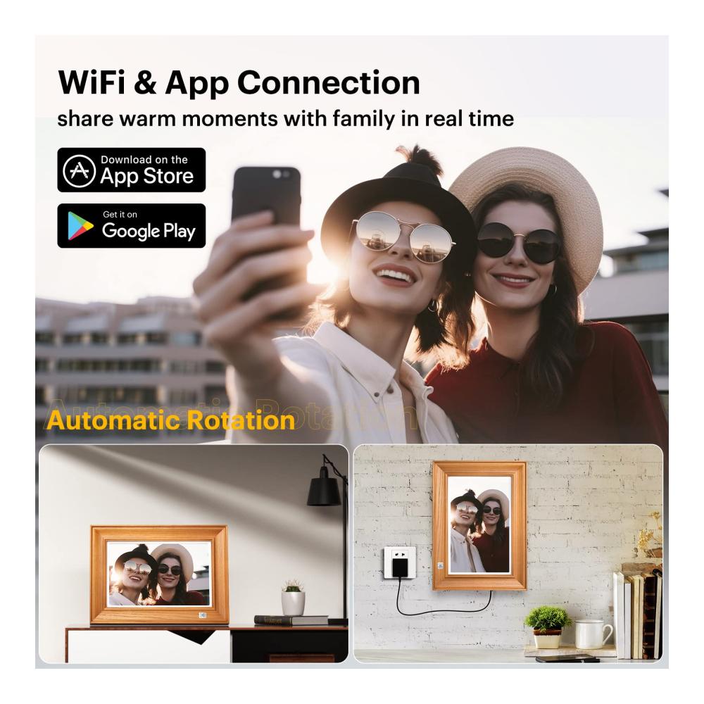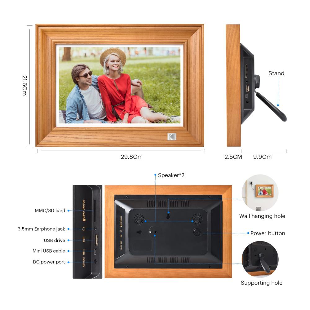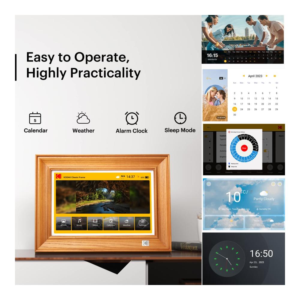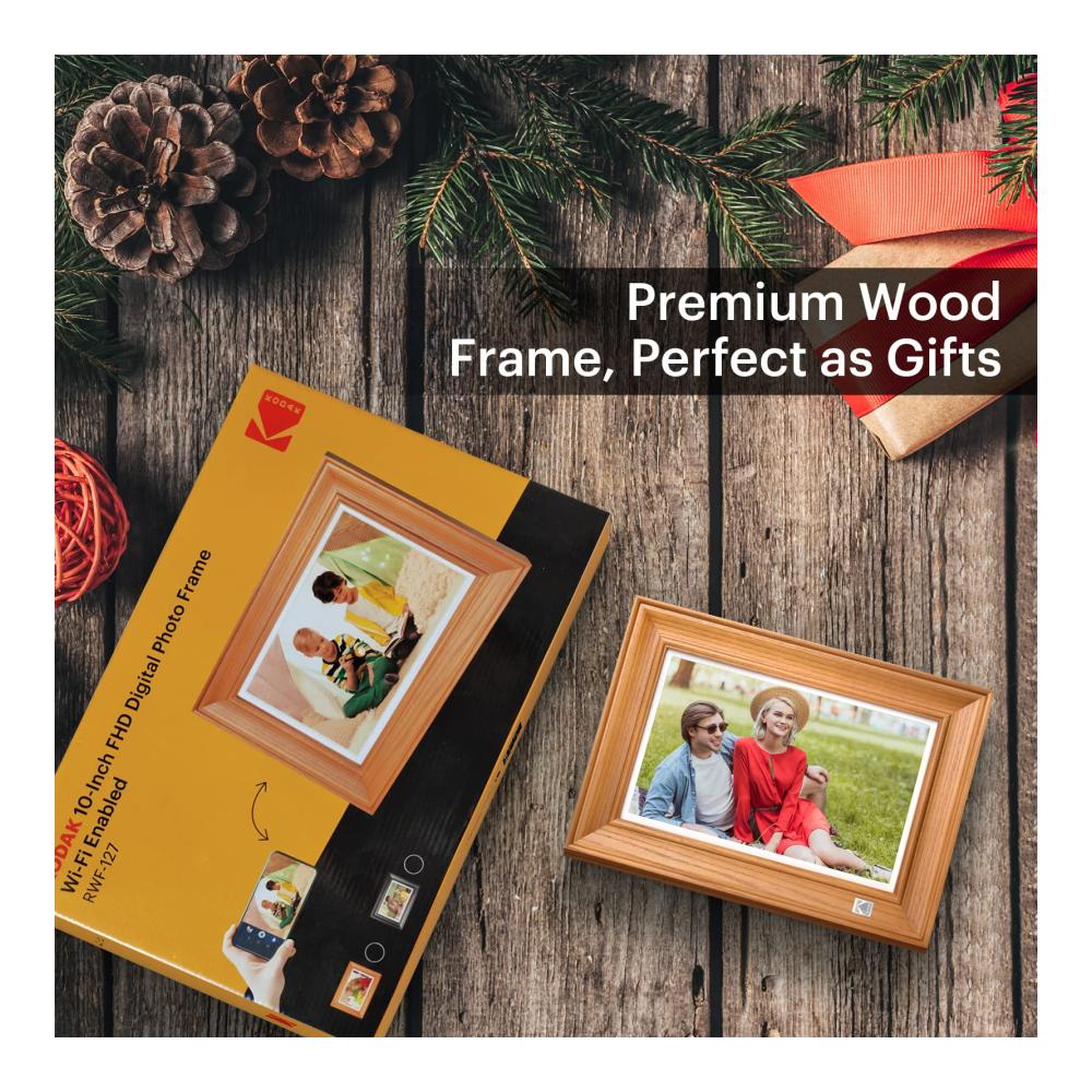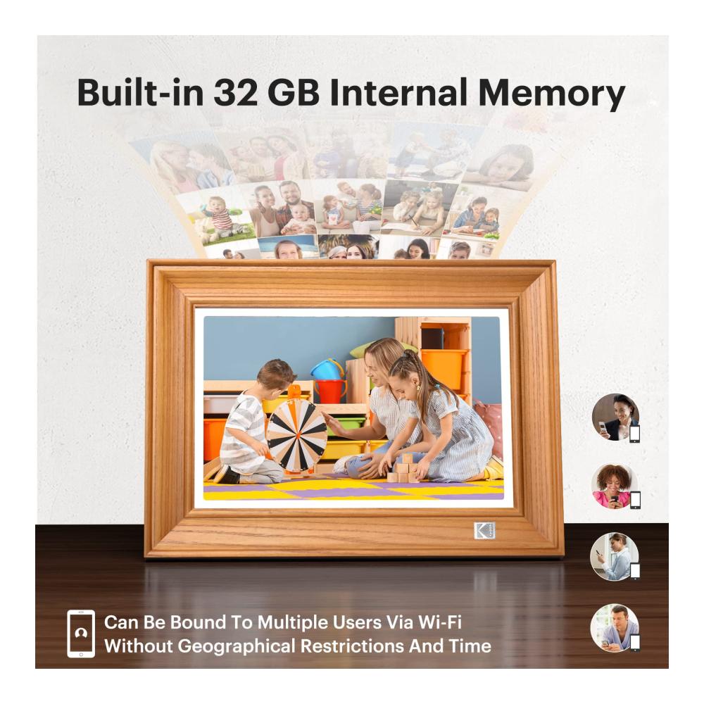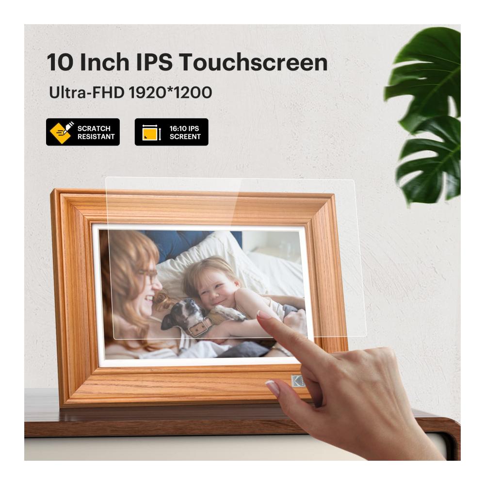 Entdecken Sie den KODAK Digitalen Bilderrahmen WLAN, ein Meisterwerk der Technik. Dieser elegante Bilderrahmen mit einem 10-Zoll-IPS-FHD-Touchscreen bietet eine außergewöhnliche Auflösung von 1920*1200, um Ihre Erinnerungen zum Leben zu erwecken. Mit einem großzügigen internen Speicher von 32 GB und der Möglichkeit zur Erweiterung über Micro-SD-Karten oder USB-Laufwerke haben Sie Platz für Tausende von Fotos. Die WiFi-Konnektivität ermöglicht es Ihnen, Ihre Momente nahtlos über die KODAK Classic Frame App zu teilen. Zusätzliche Funktionen wie automatische Drehung, benutzerdefinierte Einstellungen und die Möglichkeit, Fotos drahtlos zu übertragen, machen diesen Bilderrahmen zu einem perfekten Geschenk für diejenigen, die verbunden bleiben wollen. Erleben Sie Ihre Erinnerungen neu mit dem KODAK WLAN Digitalen Bilderrahmen